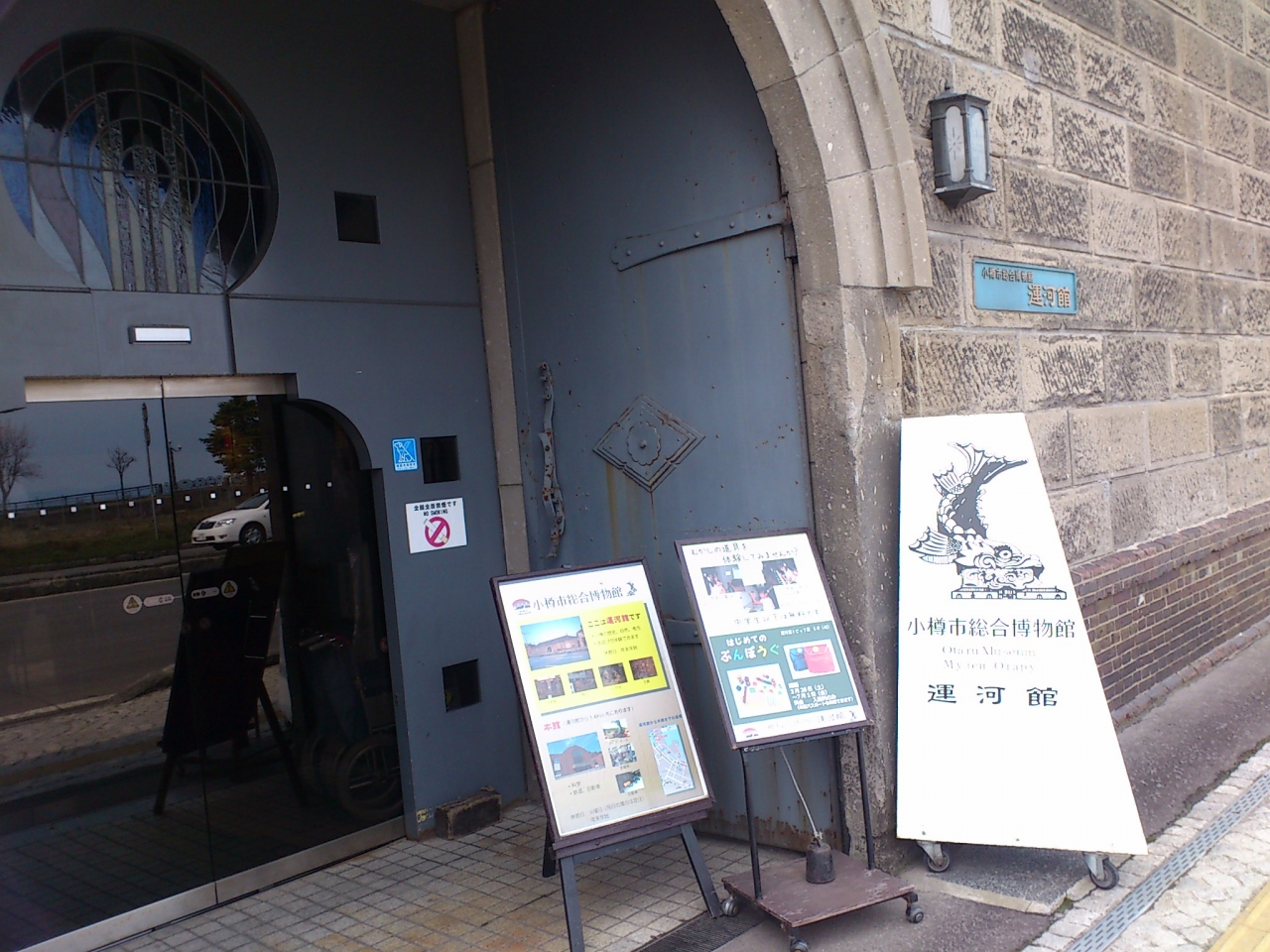小樽駅から目の前の道をまっすぐ歩いて行くと10分ほどで小樽運河に到着します。その前の交差点の左側に運がプラザがあります。その横にこの小樽市総合博物館の運河館があります。もともとは小樽倉庫という小樽市の指定歴史的建造物でしたが、博物館に改造したものです。入館料は300円です。