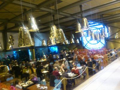 オルセー美術館の5階にあるカフェです。エレベーターやエスカレーターが有るのを知らずに、階段で5階まで登りました。有名な大時計の裏に出ます。5階にも有名な絵画が展示されています。それらを見終わると奥にこのカフェがあります。豪華な雰囲気です。値段は少し高いです。