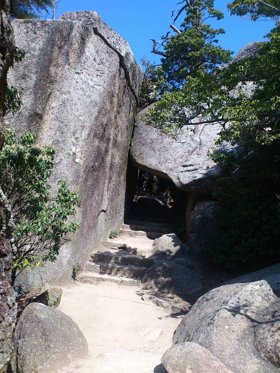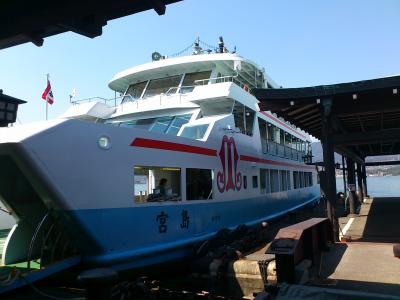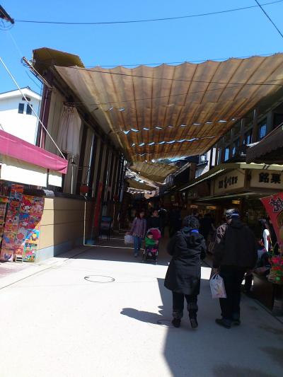 宮島フェリーを宮島桟橋で降りて、厳島神社へ海沿いの道を進んで行きます。車では入れないように柵があるので、そこを左に曲がると多くの商店が立ち並ぶ参道になります。行きはそのまま海沿いの道で厳島神社へ行き、帰りに参道を通って帰ってきました。焼き牡蠣・もみじ饅頭のお店が並んでいます。