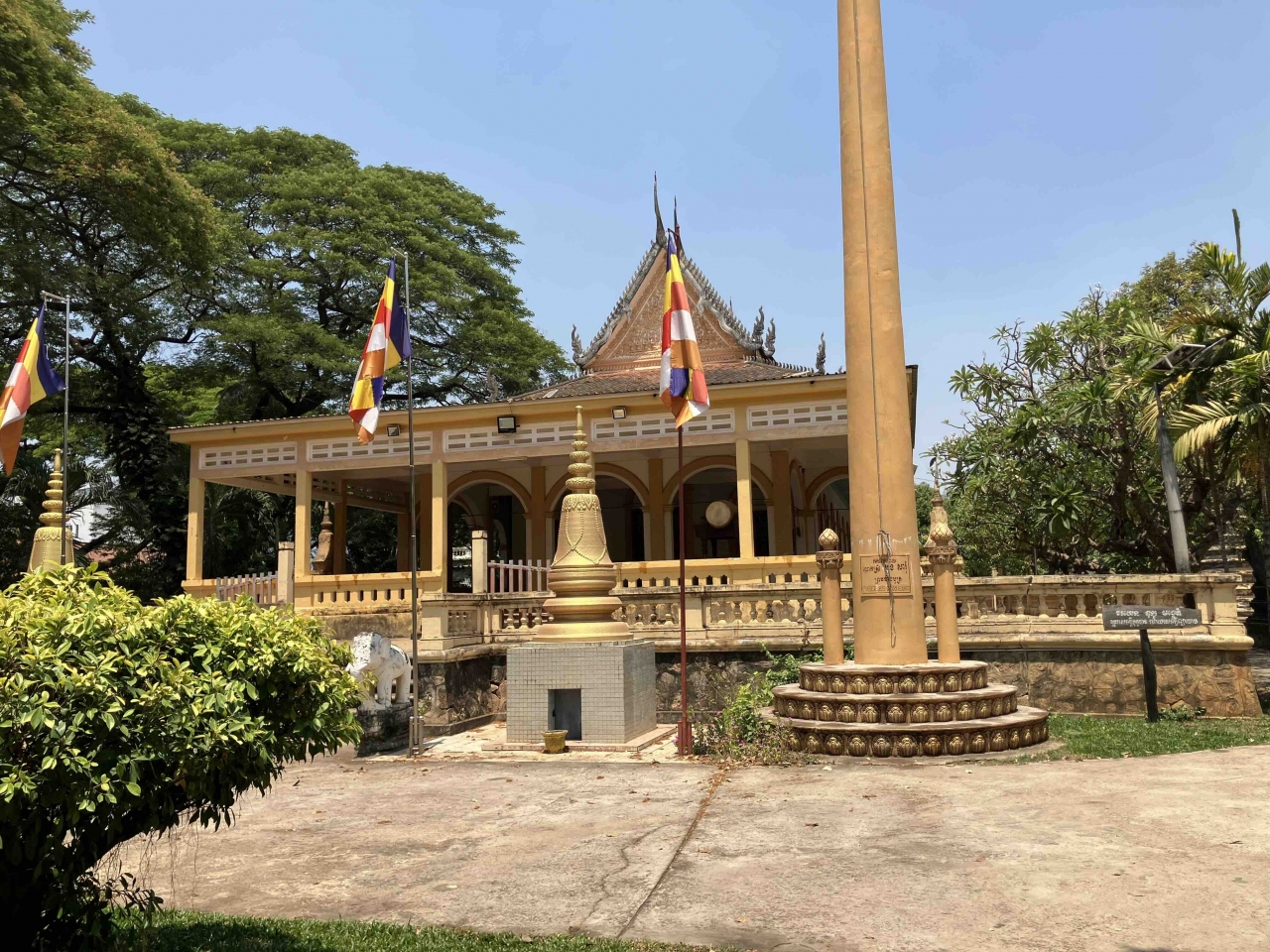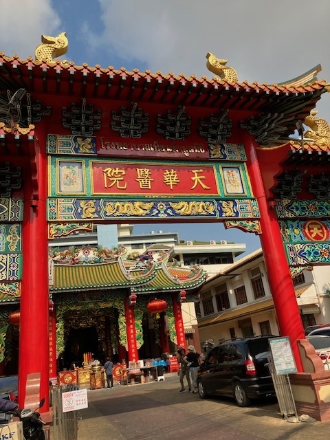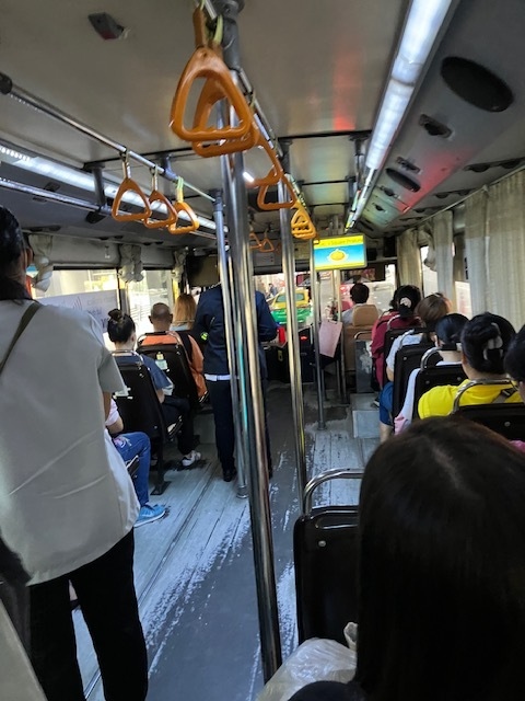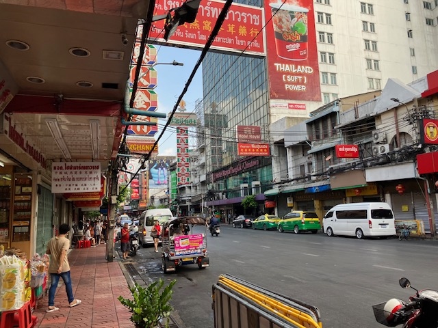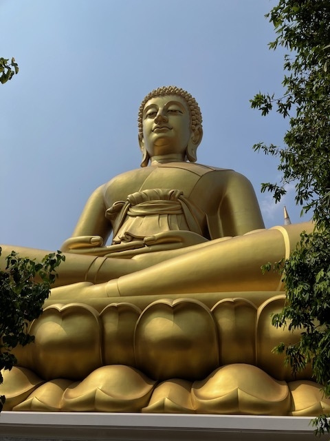 街中にあるヒンズー教の祠のエラワン廟からバスに乗って黄金仏寺として有名なワット・トライミットへ行きました。バスを降りると目の前に黄色のワット・トライミットの本堂が見えました。建物の一番上の4階にご本尊の黄金物が鎮座しています。そこへ行くには100バーツでチケットが必要です。