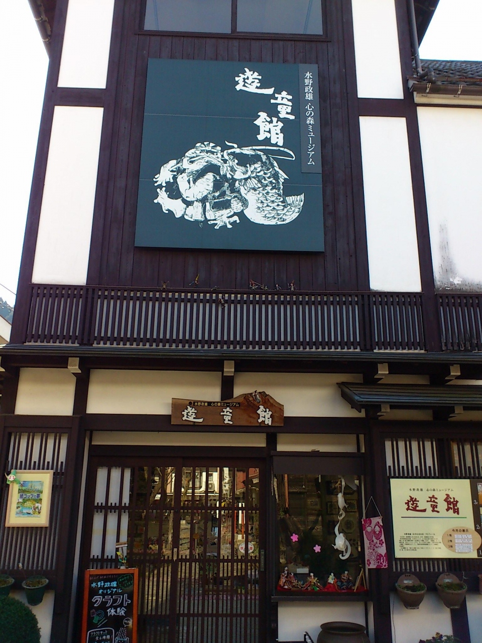 郡上八幡のやなか三館(斎藤美術館、心の森ミュージアム遊童館、おもだか家民芸館)のうちの一つです。入館料が必要ですが、郡上八幡手形(1500円)を購入してあったので、それで入館できました。郡上八幡出身の画家の水野政雄氏の作品が展示してあり、3階建ての建物です。個人によって好みが分かれると思いますが、私にはあまり興味を引きませんでした。