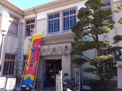 趣のある洋風建築の建物です。吉田川に架かる新橋のたもとにあります。実際に八幡町役場として使われていた建物ですが、現在は観光案内所として使われていて、中にはレストランやお土産販売所などがあります。裏にはトイレや駐車場もあります。