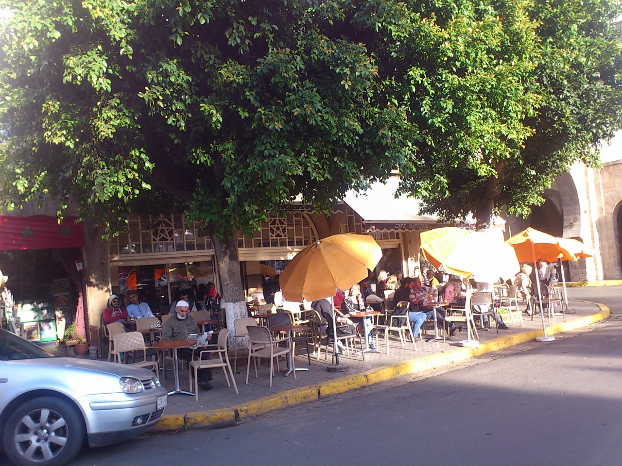 モロッコの最大都市カサブランカのハンドクラフトで有名な市場のハッブール街の中にあるカフェレストランです。市場の入口にあり、多くの観光客や地元の方がここでモロッコ・ティーを飲みながら歓談しています。パーブの効いたお茶に砂糖を入れて飲むモロッコ・ティーが美味しかったです。