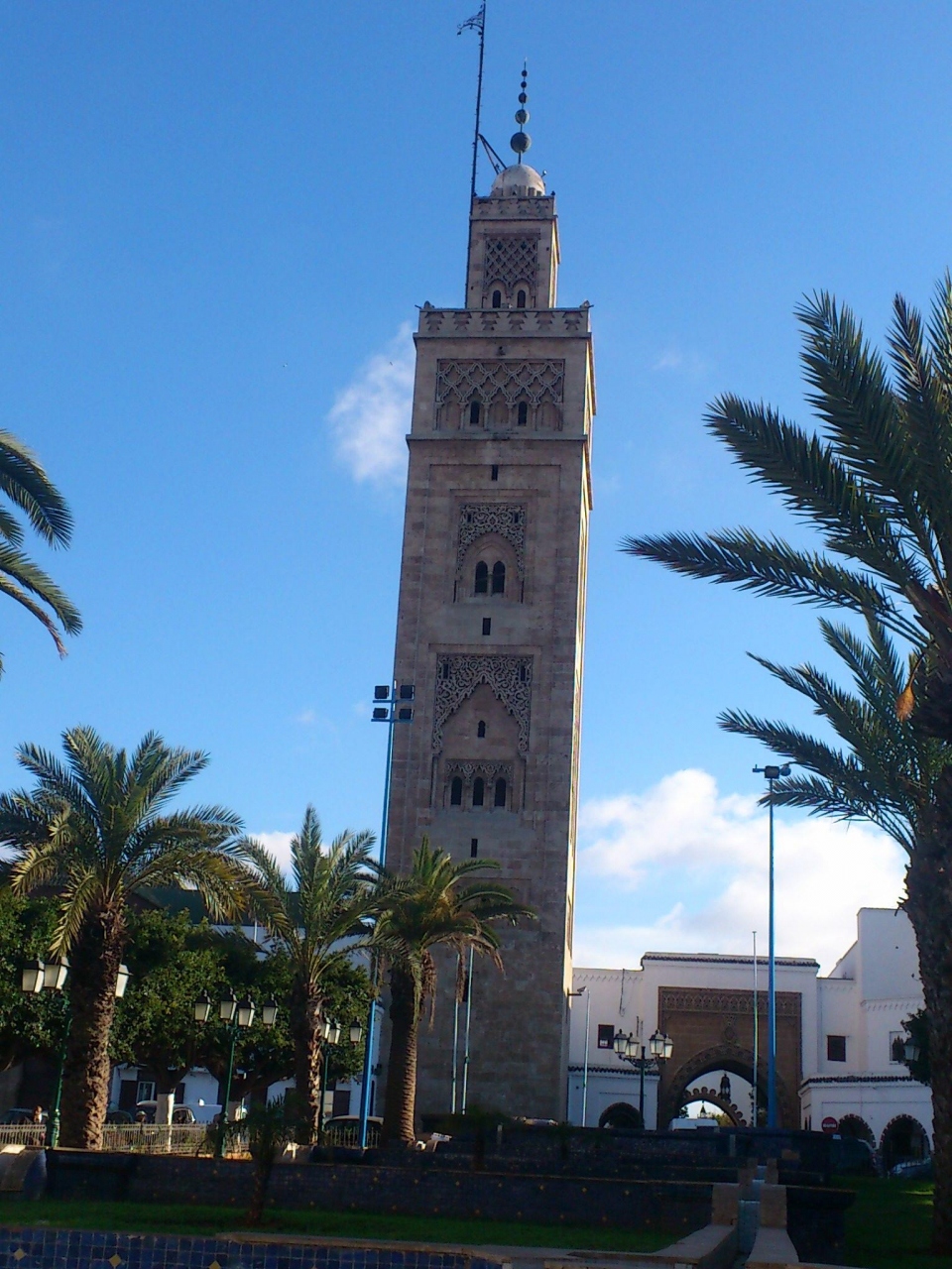 モロッコの最大都市カサブランカのハンドクラフトで有名な市場のハッブール街の中心にある公園にそびえるモスクです。トルコで多くのモスクを見ましたが、カサブランカのモスクはドーム型ではなくて、タワーの形をしています。外観からすると5階建のようです。すくっと立つ姿が美しいです。