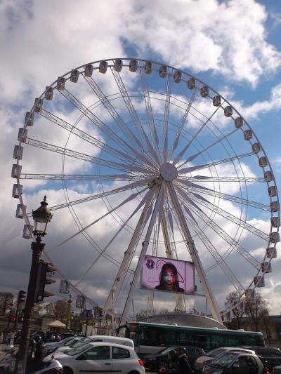 常設ではなくて、季節もののようです。凱旋門に登り、シャンゼリゼ通りの向こうのコンコルド広場の方見ると、巨大な観覧車が見えました。かなり距離がありますが、それでも観覧車と一目でわかるぐらいの大きさです。そのあと、実際にコンコルド広場まで歩いていくと、チュイルリー公園の目の前に立っていました。