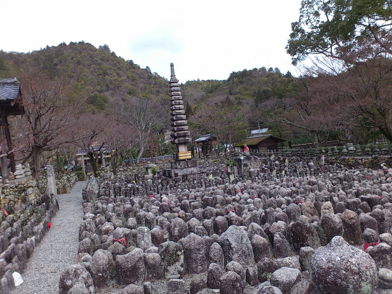 京都嵯峨野の奥にあるお寺です。愛宕念仏寺から愛宕道を歩いて下りて来ると、この化野念仏寺が右手にあります。境内のど真ん中に西院の河原があります。あだしの山野に散乱埋没していた人々のお墓である石仏・石塔を、明治の時代に地元の人々の協力を得て集めたのが、この西院の河原だそうです。