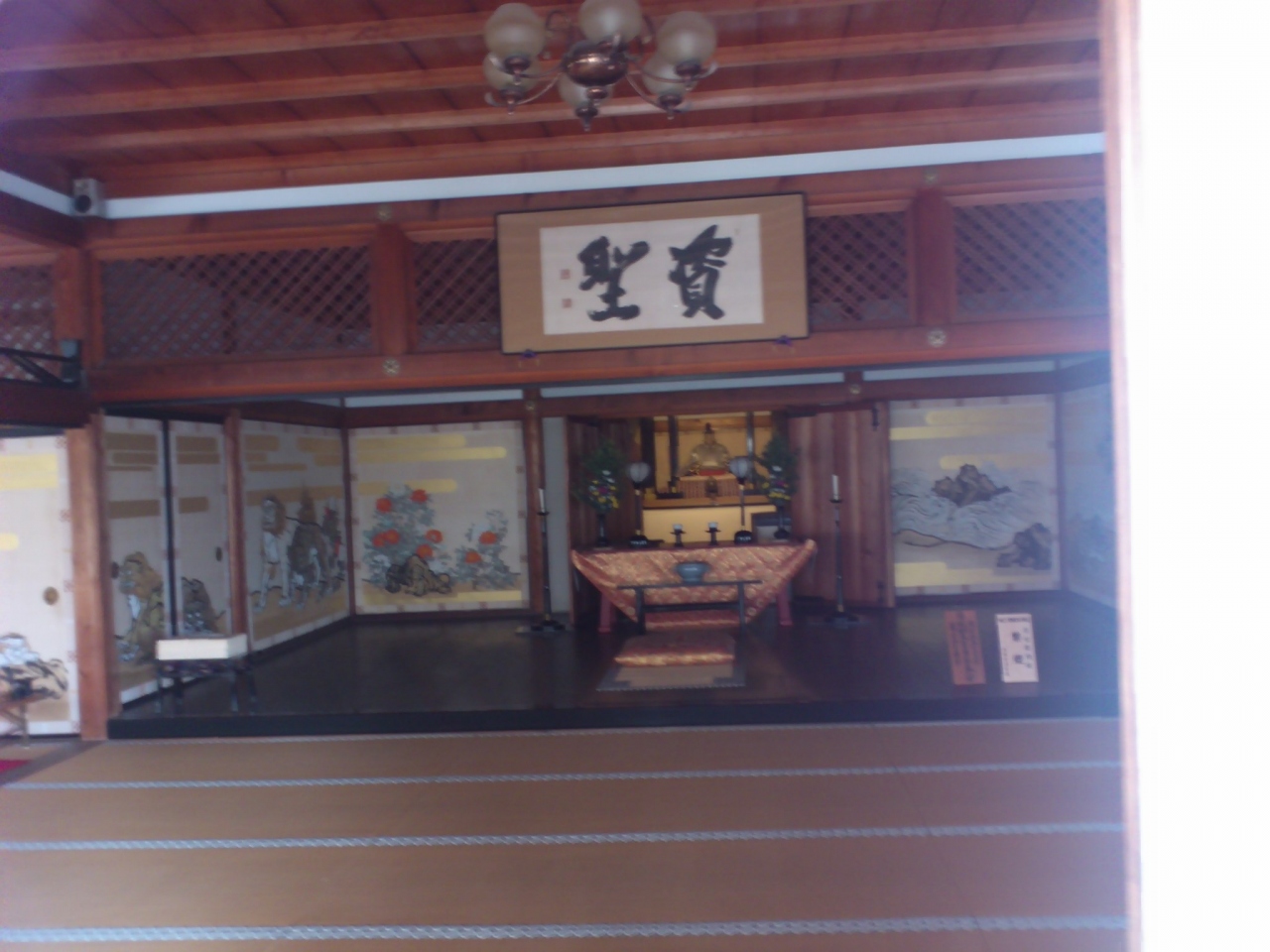 大方丈は天龍寺最大の建物で、本尊は重要文化財の釈迦如来坐像です。この建物の中に入るんは、入館料500円が必要です。入口には有名なダルマの絵がありました。方丈の裏には曹源池庭園が広がっています。小方丈の奥には廊下で繋がった後醍醐天皇の尊像が祀られている多宝殿もあります。