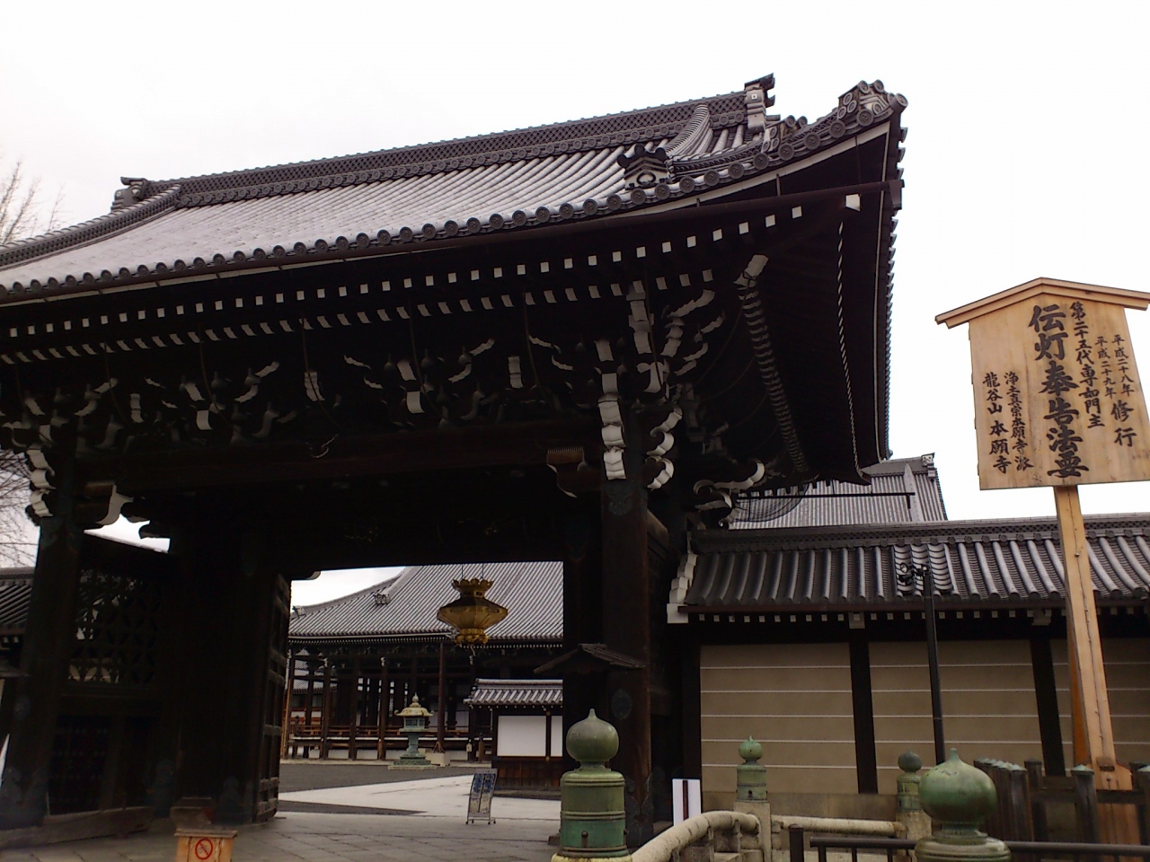 道を間違えてしまい、堀川通りを挟んだ総門の方から本願寺へ向かったので、堀川通りを渡った目の前に現れたのがこの御影堂門でした。名前の通り、この門をくぐると御影堂が正面にあります。隣の阿弥陀堂門は装飾も派手で立派ですが、この御影堂門は荘厳で落ち着きのある門です。