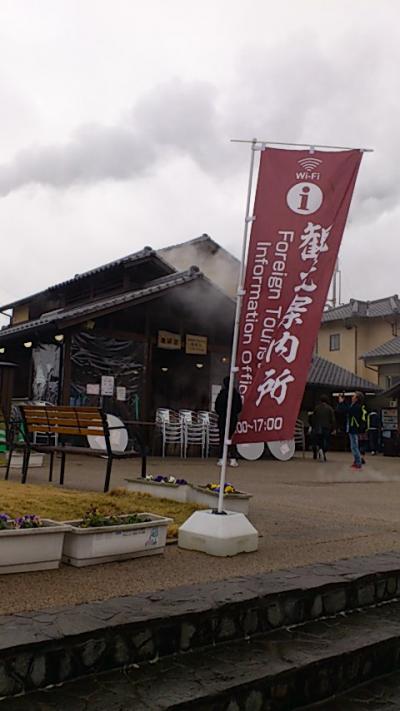 鉄輪の亀の井バス停からいでゆ坂を少し下った右側に地獄蒸し工房があります。その工房の中に入ってすぐ右に小さなコーナーが観光案内所です。ほとんど何も調べずに罰符に来たので、ここでいろいろな情報を仕入れる事が出来ました。優しく丁寧に教えてくれました。高速バスで別府に行く時は、この観光案内所が便利です。