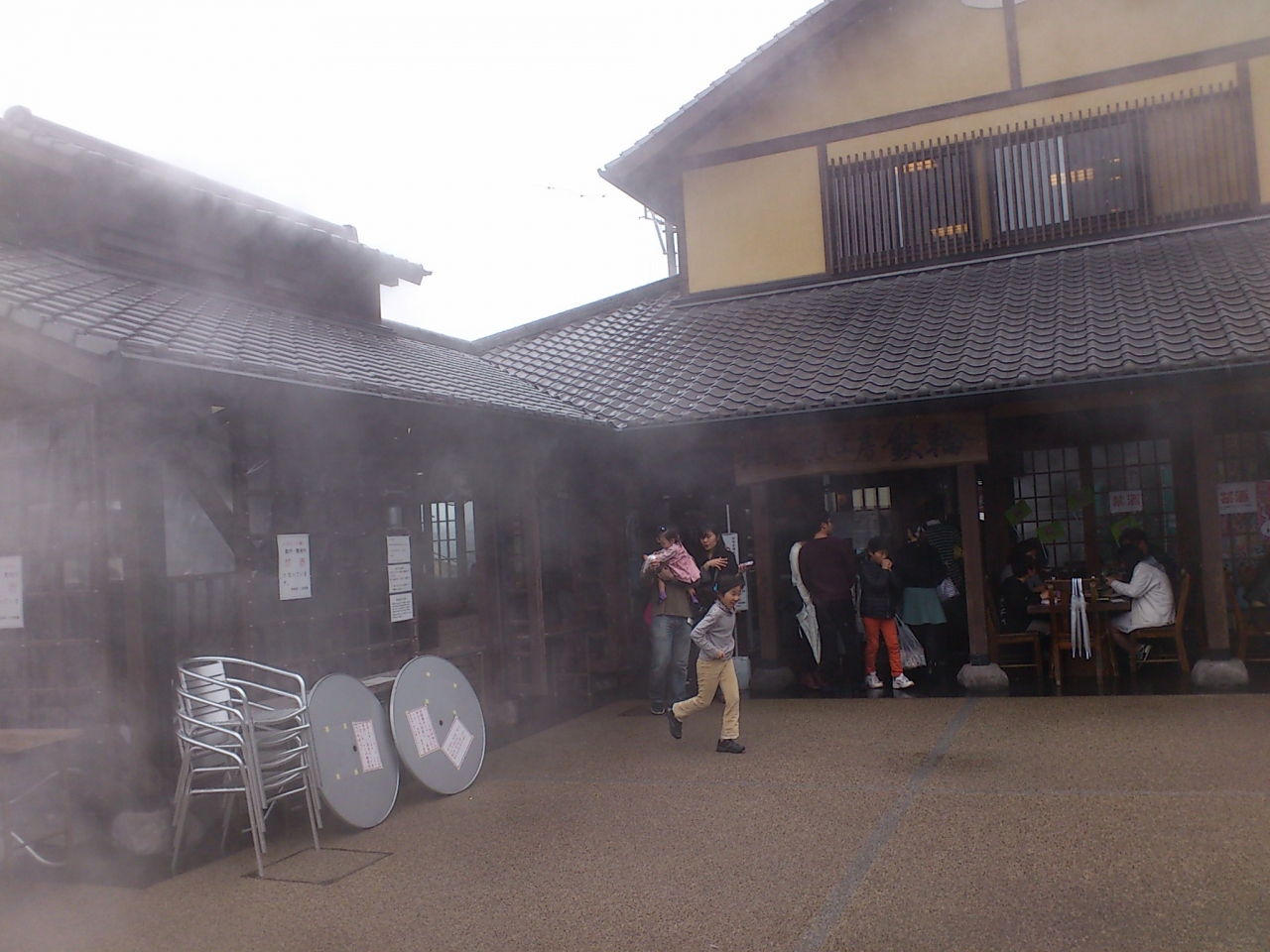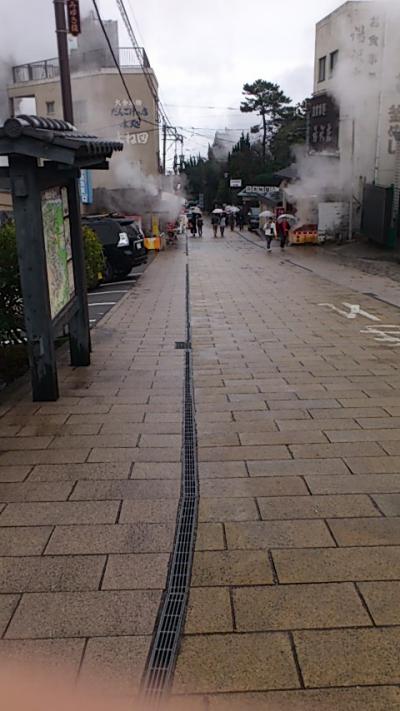 別府の地獄めぐりを終わって亀の井バスのバスセンターからいで湯坂を少し下ると、地獄蒸し工房鉄輪があり、その下のポケットパークにある足蒸し・足湯です。足湯はあちこちの観光地にありますが、足蒸しという蒸気で温めるのはとても珍しいと思います。別府ならではでないでしょうか。