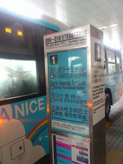 福岡空港に降り立ち、別府への高速バスに乗るために国際線ターミナルへ移動するのにこのバスを利用しました。国内線の第2ターミナルに到着し、表示に従って歩いて行くと乗り場がありました。無料です。途中、二箇所のゲートがあり、移動にかなりの時間が掛かりました。