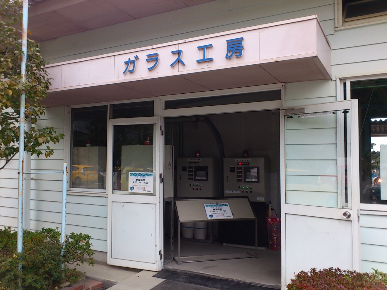 仙巌園の隣にある白い洋館のような建物があります。薩摩切子の販売店の磯工芸館です。その隣にこの薩摩切子の工房があり、無料で見学が出来ます。大きく分けて、2つの工程が見学出来ます。一つは溶けたガラスを様々な形にする工程と、出来たガラスを研いで綺麗な文様を浮かび上がらせる工程です。