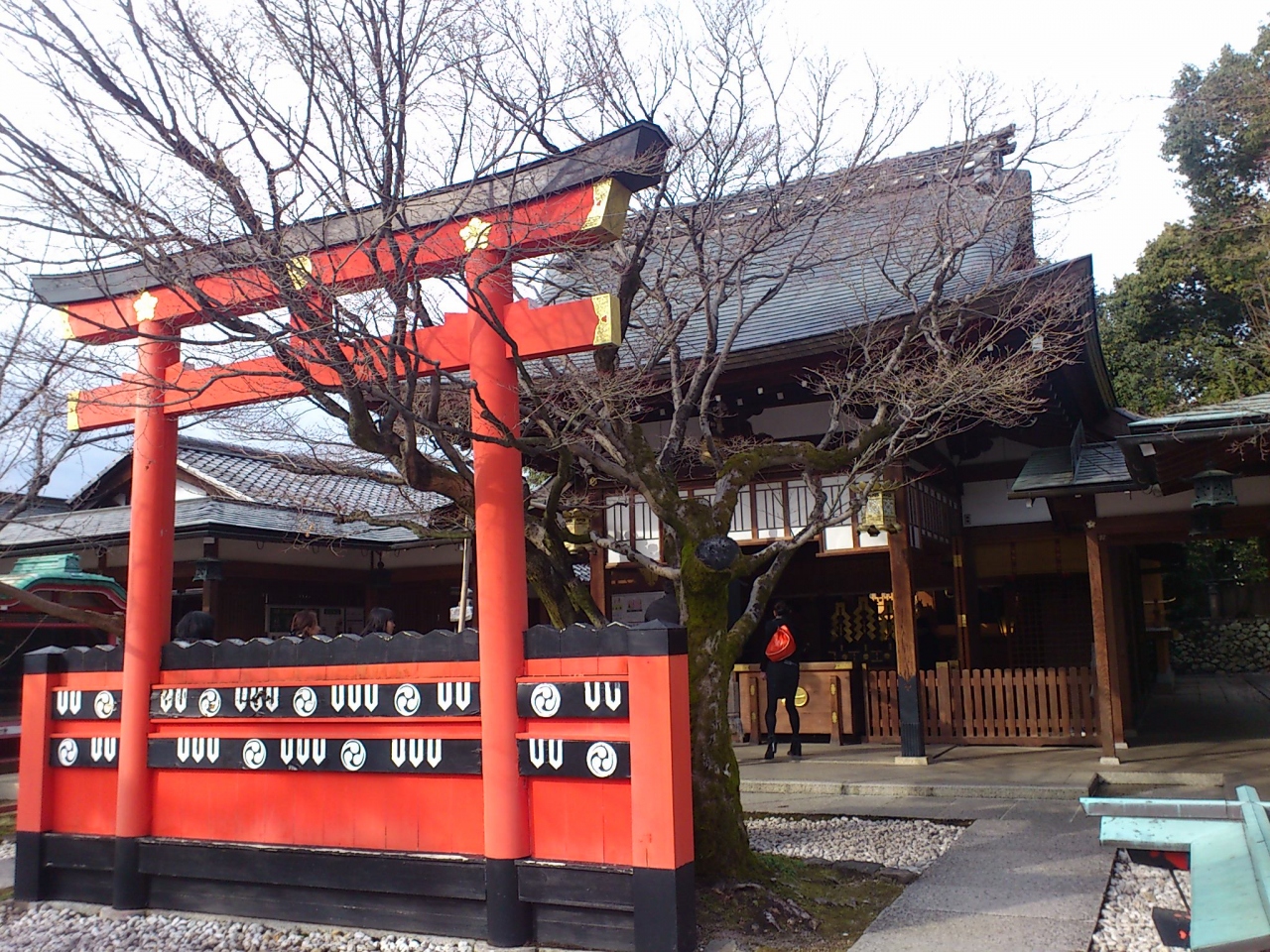 車折神社を参詣した時に見つけた神社です。車折神社の末社のようですが、こちらもたくさんの観光客でいっぱいでした。赤い札に芸能人の方の名前を書いた名札がたくさん収められていて、神社全体が赤いです。アイドルからベテラン、歌舞伎役者まで、よく知る芸能人の名前がたくさんありました。
