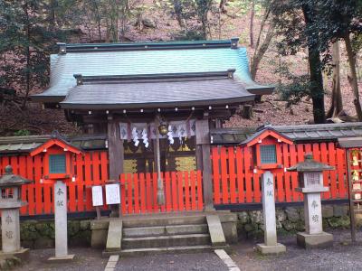 JRの駅から歩いて渡月橋へ行きました。桂川が流れる渡月橋を渡ると、嵐山公園にでます。渡月橋を渡る途中で右側に赤い神社が見えたので行ってみました。神社の看板と嵐山モンキーパークの看板が並んで立っています。奥津島姫命と市杵島姫命が松浦てていて、水難の神様だそうです。