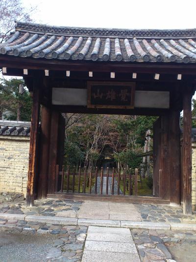 嵐山から隣駅の車折神社まで嵐電に乗って移動しました。嵐電の駅1つ分を嵐山方向に戻ると、この鹿王院の駅になりますが、線路沿いに歩いて移動しました。鹿王院の駅からは南側へ住宅街の中を歩いていくと、手書きの案内板があるので、そこを右に曲がります。鹿王院は京都の隠れた紅葉の名所だそうですが、1月と言う季節外れの時期なので、誰も観光客がいませんでした。