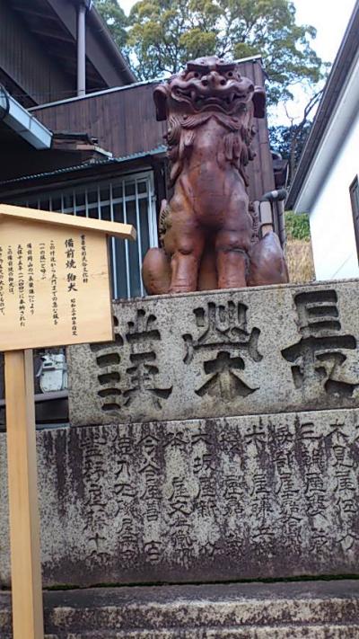 海の神様の金比羅さんにお参りに行きました。御本宮までは700段以上の石段を登らなければなりませんが、100段目辺りに一之坂鳥居があります。この一之坂鳥居の傍らには、重要有形民俗文化財の備前焼狛犬があります。備前池田藩が奉納したものだそうです。