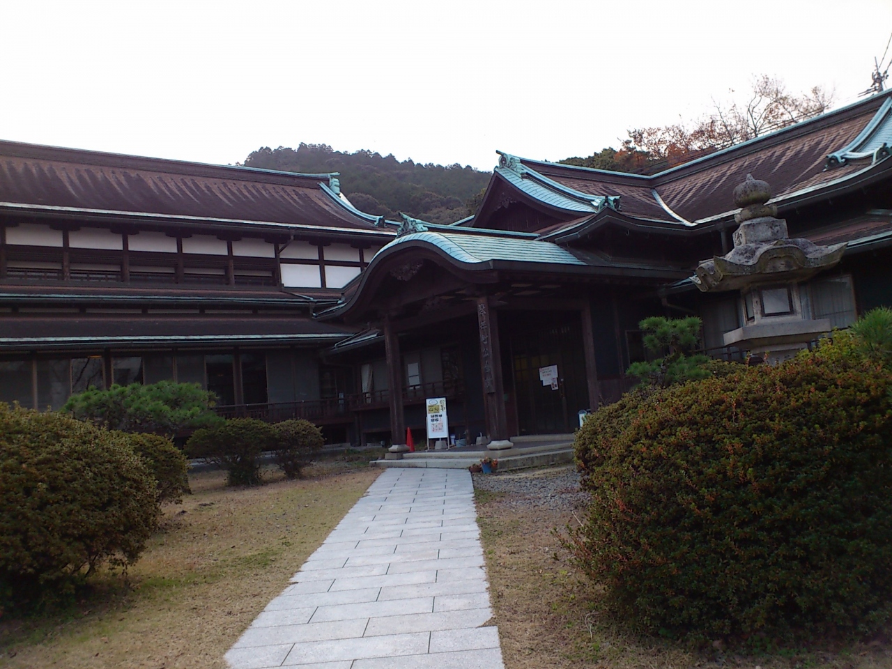 金毘羅さんの御本宮へ向かう途中、参道の長い階段を少し上がったところで左に脇道があります。そこを進んで行くと海の科学館があり、その先にこの公会堂があります。昭和7年に建てられた木造の建物で、現在も現役でイベントなどで使用されているようです。国の登録有形文化財に登録されています。