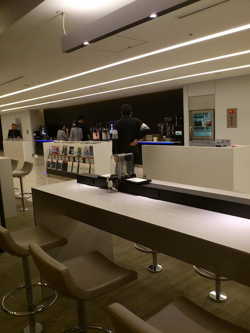 羽田第2ターミナルの手荷物検査Bから入って右側へ少し入ったところにあります。エスカレーターで3階に上ります。かなり広いラウンジで、ゆったりと過ごすことができますが、食べ物は柿ピーしか無く、ドリンク類がメインです。