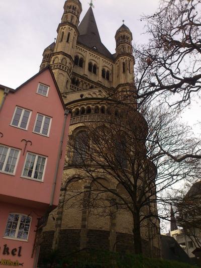 ケルン大聖堂の観光を終えて、近くのライン川沿いに広がるこの広場の中にあるレストランでランチを取るために通りました。ライン川をクルーズする船着場もあります。フイッシュマルクト広場と言う名前から、昔は魚関係の場所だったと思いますが、今はその面影はありません。聖マルティン教会も近くにあり、美しい姿をしています。