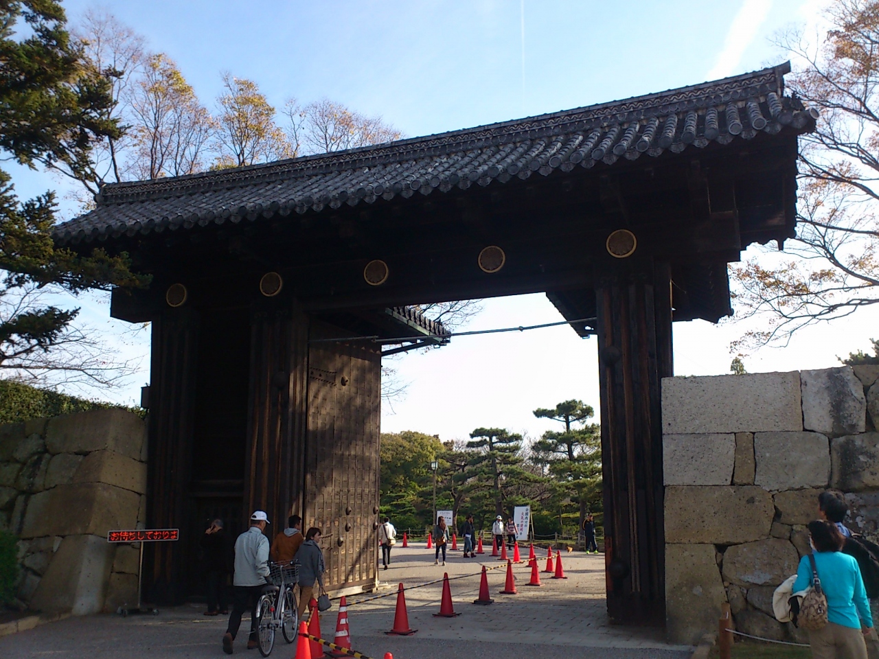 姫路城に入城するために桜門橋を渡ると、この大手門が現れます。姫路城の門の中では、菱の門が一番有名かもしれませんが、この大手門も良いです。桜門橋と同じで復元されたものです。高麗門の形をしていて、なかなか立派な門です。