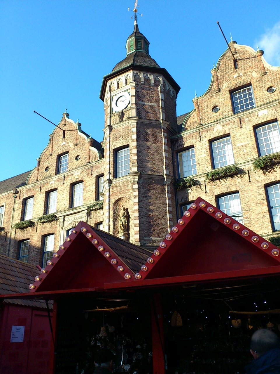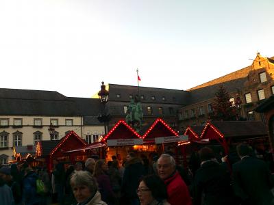 仕事でデュッセルドルフに行きました。世界で一番長いバーカウンターで有名な旧市街を歩いているとゴシック調の見事な旧市庁舎が現れました。その前の広場は、クリスマス前の屋台のようなものが出ていて、すごい人出でした。この広場の真ん中にこの銅像が建っています。かつての領主、ヤン・ヴェレムの騎馬像です。