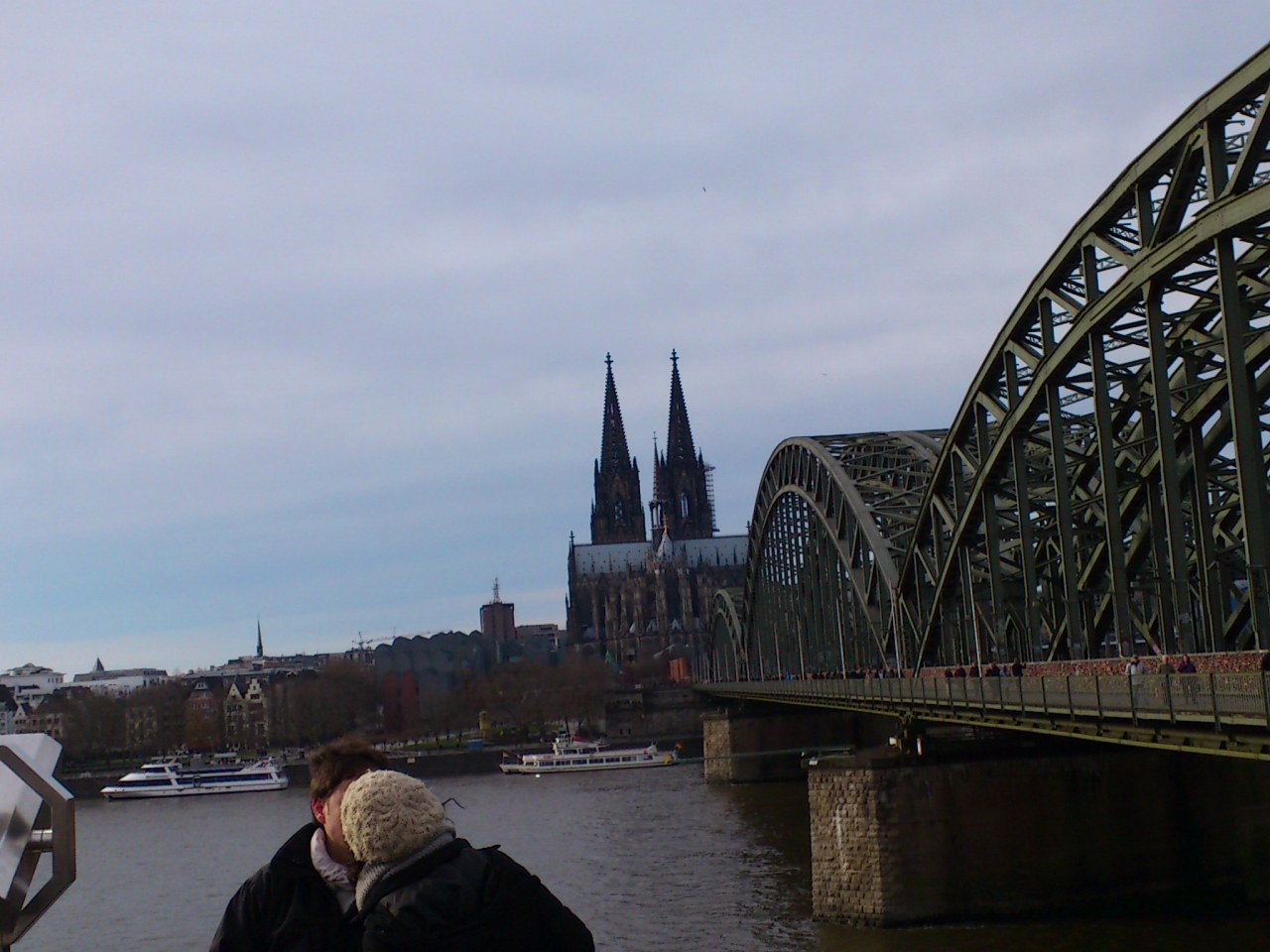 ライン川に架かる鉄道橋です。デュッセルドルフから電車でケルンへ移動したので、この橋を電車で渡ってケルンに入りました。ケルン大聖堂は直近で見るのも良いですが、対岸に渡って見る全景も素晴らしいとあったので、この橋を渡ってみました。鉄道の線路脇に歩道があります。鉄道側の金網には、パリの有名な橋と同じように南京錠がたくさん掛けられています。