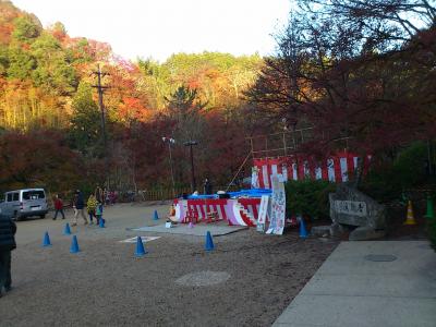 香嵐渓の見所の三州足助屋敷の前に広がる広場で、ここから香積寺への石段へ進んでいくこともできます。無料のトイレもありますし喫煙場所もあります。少し休憩するにはもってこいの場所です。人だかりが出来ていたので覗いてみると、猿廻しをやっていました。