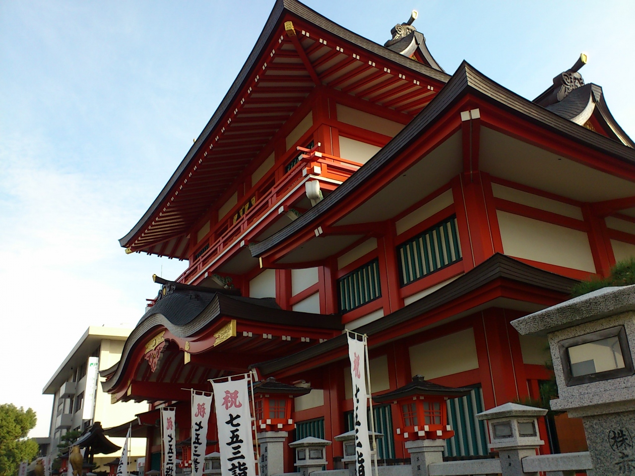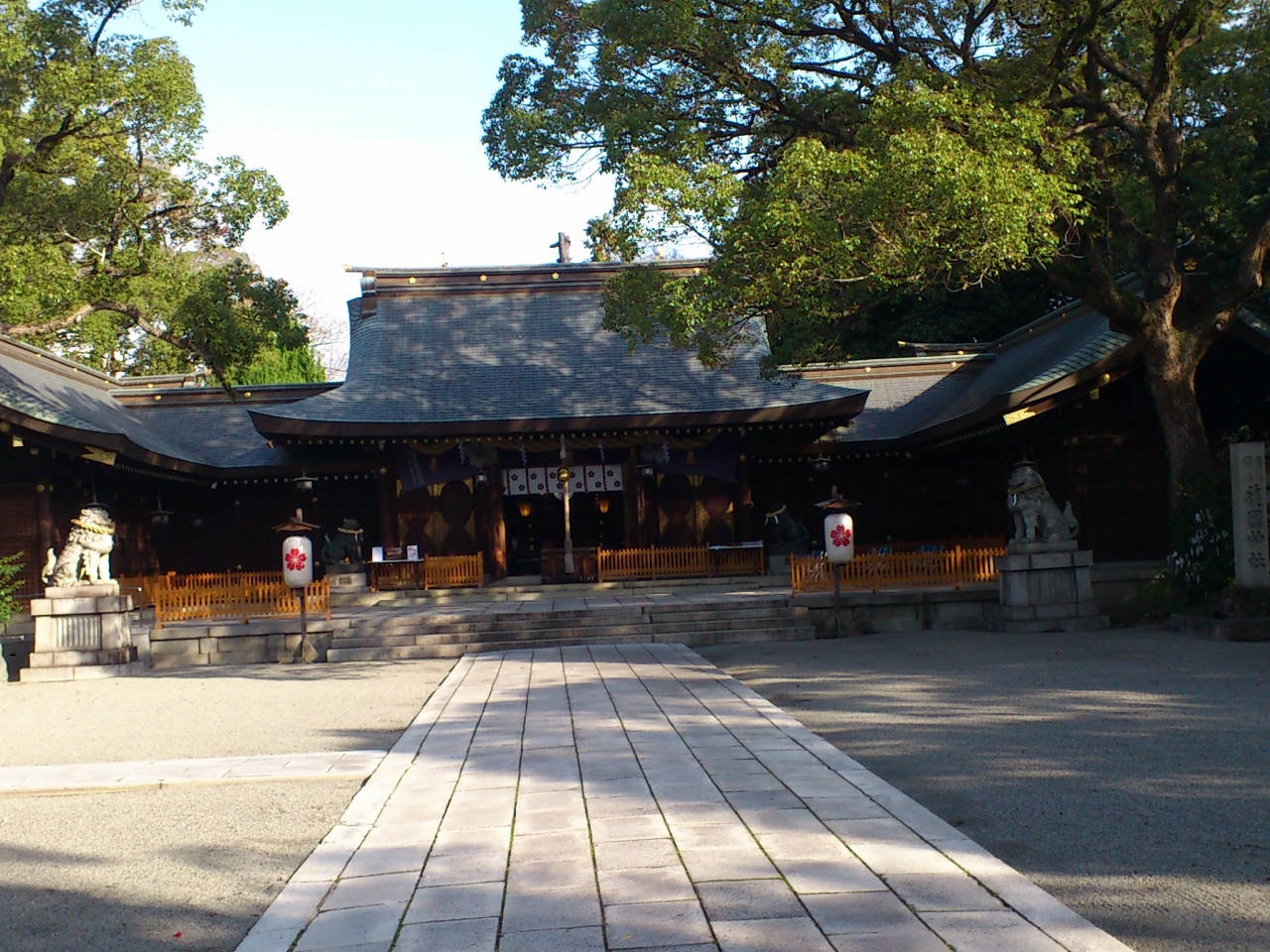 姫路城のやや東側にある播磨国の総社という由緒ある神社です。姫路駅から姫路城まで歩いて向かう途中に寄り道して立ち寄りました。赤い大きな豪華な門が目立ちます。門をくぐって、住宅地の仲に作られた参道を少し歩くと本殿が現れます。地元の方だと思いますが、結婚式を挙げていました。黒田官兵衛にも所縁のある神社です。