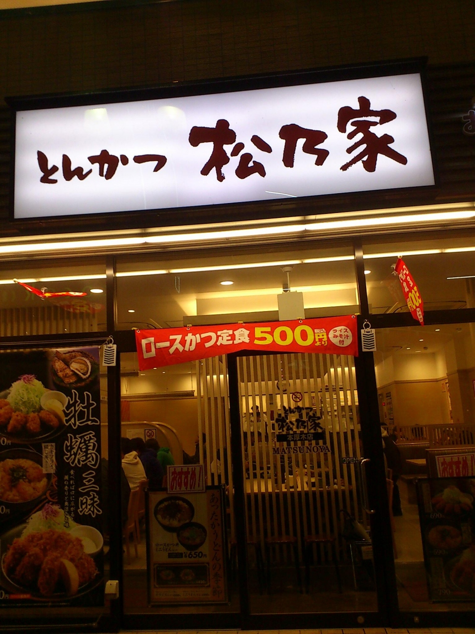 久しぶりに本厚木の一番街をぶらぶらしていたら、目新しい店が出来ていたので、ここで夕ご飯を食べることにしました。松乃屋は牛丼チェーンの松屋が経営しているとんかつ店であることを知っていたので、少し興味がありました。入口の自販機で食券を購入するところは松屋と同じです。ワンコインでとんかつを食べることができて、手軽です。