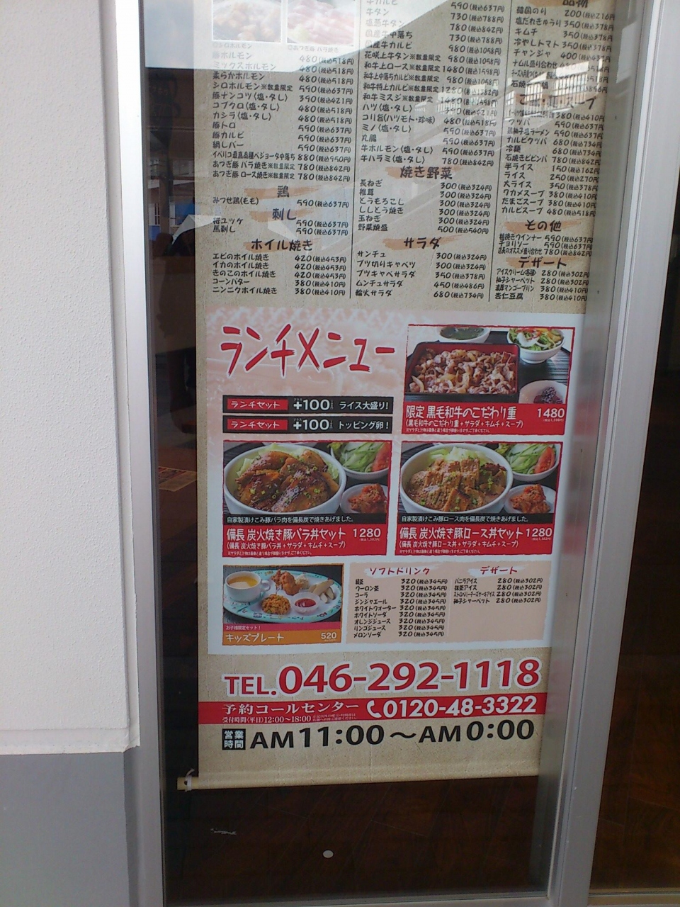 海老名にできたばかりのららぽーと海老名の1階の外側から入る焼肉屋でランチをしました。ランチはセットメニューだけの営業で、焼肉はオーダーできないようです。主に丼物を中心としたランチメニューで、4種類ほどありました。ロースの焼肉が乗った丼を注文しました。1300円ほどで、そこそこのお味でした。