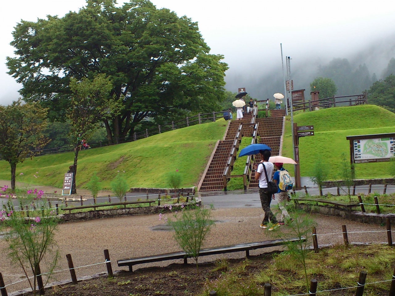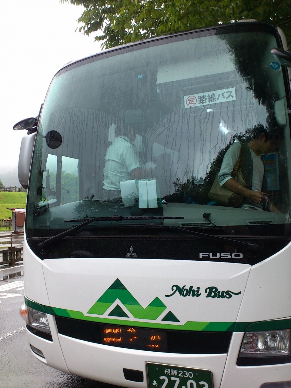 白川郷へ行ったら是非展望台へ行き、白川郷集落を一望すべきとの事で、展望台へ行くために乗ったバスです。以前は別の場所から発車していたようですが、今は和田家の近くから発車するので、であい橋から5分ほど歩かなければなりません。始発は9時ちょうど、料金は片道200円です。マイクロバスで、時間は5分ほどで展望台に着きます。帰りは徒歩で街まで降りました。