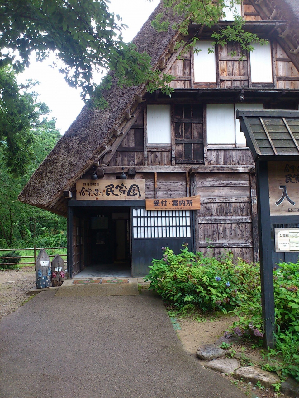 飛騨高山から白川郷へバスで移動し、白川郷のバス停を降りました。観光案内所のあるせせらぎ公園とは反対側に3分ほど歩くと、この民家園があります。飛騨高山からの高速バスの往復切符にこの民家園の入場券がセットになったものが有ったので、それを飛騨高山で購入しました。昭和47年に廃屋となっていた合掌家屋9棟を集めて民家園として保存しているものです。合掌造りの茅葺民家が、かなり密集していて、見応えがあります。