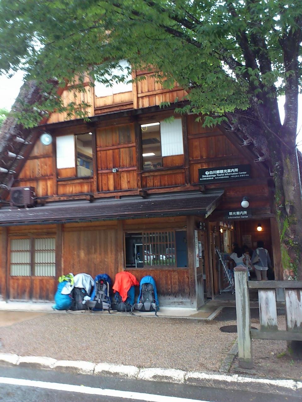 飛騨高山から白川郷へバスで移動し、白川郷のバス停を降りるとすぐ横にせせらぎ公園があります。そのからすぐの場所に茅葺のこの観光案内所がありますので、ここで観光マップを貰ったり、観光情報を入手すると良いです。トイレもあるし、ここで一通りの用事を済ませてから、白川郷へ向かうと良いと思います。