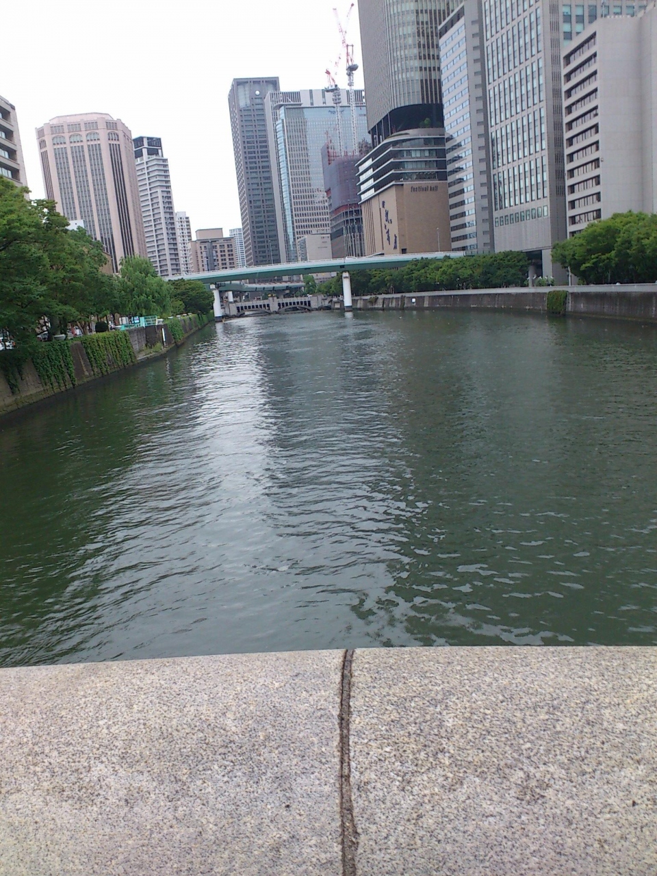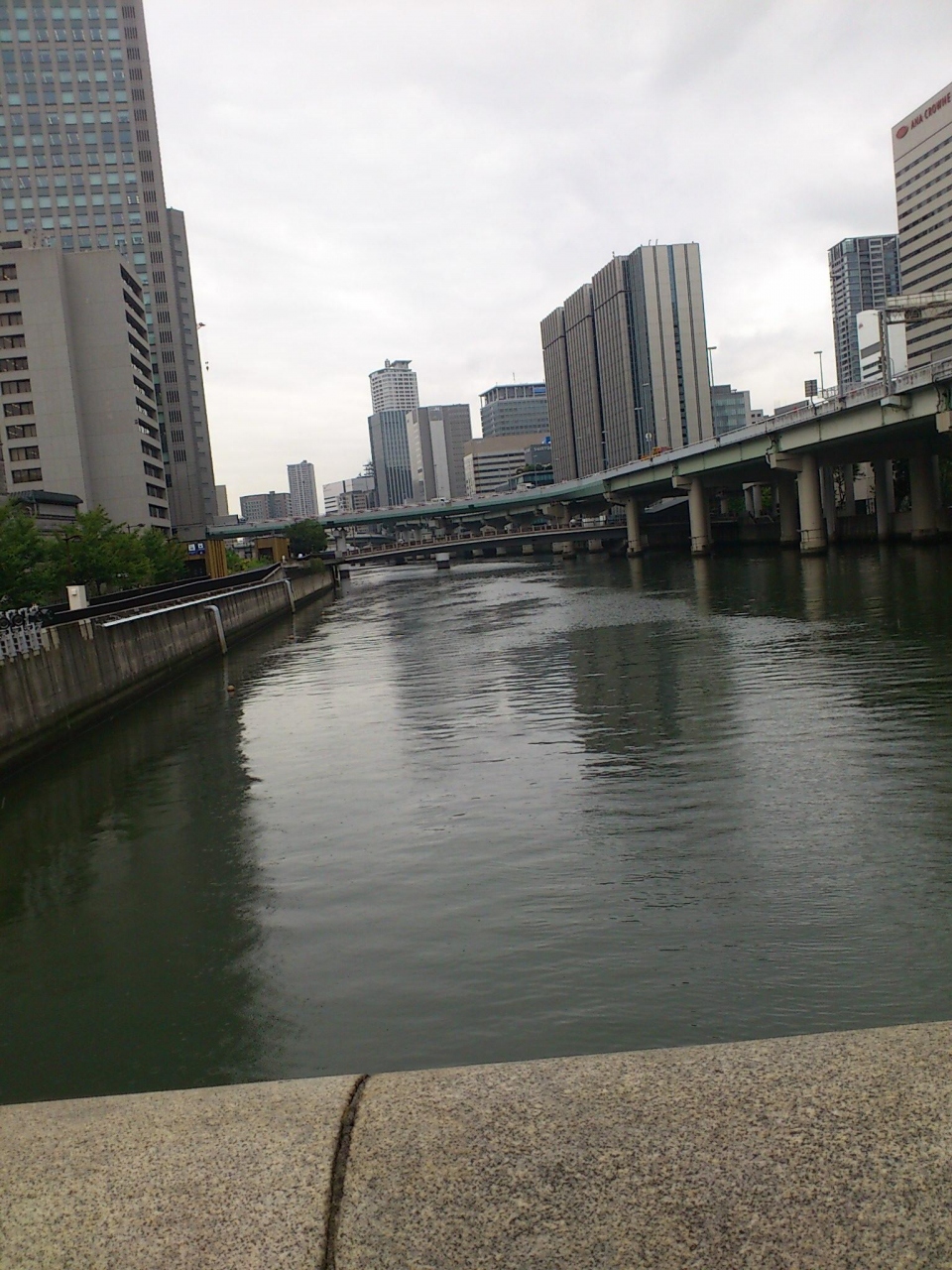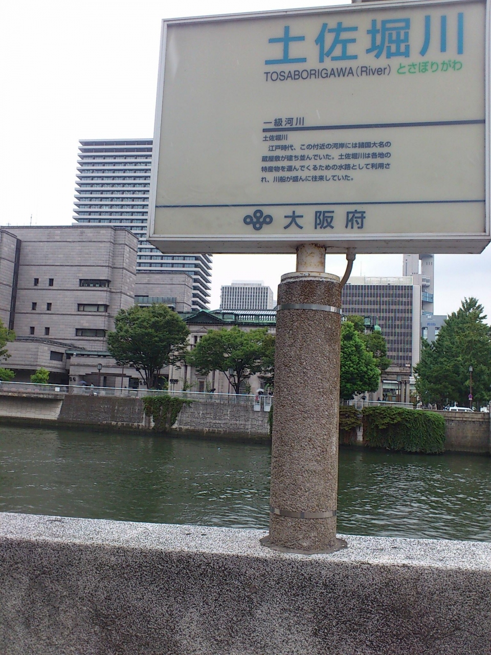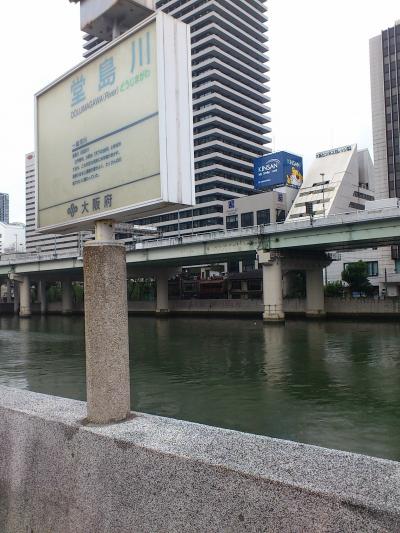 大阪の淀屋橋から梅田まで歩いてみました。淀屋橋はこの土佐堀川に架かっています。淀川が2つに分かれ、中之島の北側が堂島川、南側がこの土佐堀川です。上を見ると高速道路が走っています。近くは大阪のオフィス街が広がっています。