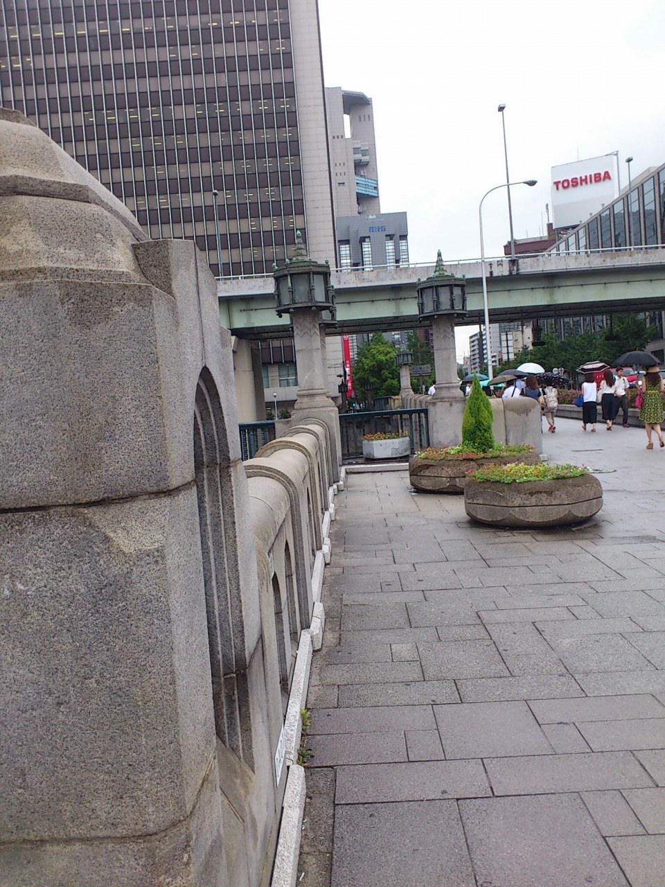 地下鉄の淀屋橋駅から梅田まで、駅1つ分御堂筋を徒歩で歩いてみました。まず最初に淀屋橋、次に堂島川に架かるこの大江橋を渡りました。コンクリート製のアーチ橋で趣がある橋です。基本設計は大正時代にデザインコンペで決まったものだそうです。