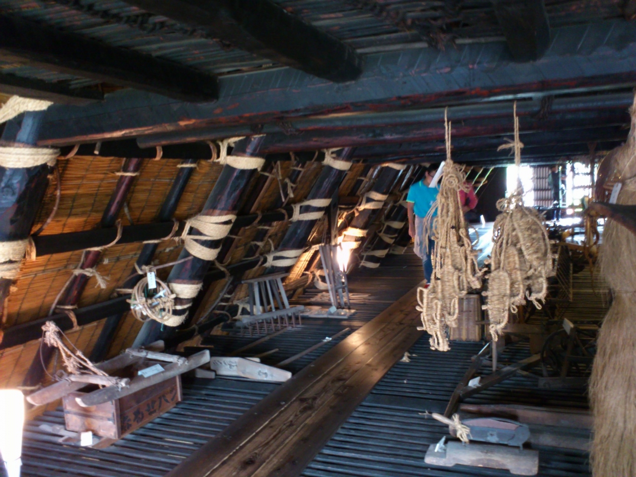 白川郷の中でも最も有名な合掌造りの家ではないでしょうか。展望台から合掌造り集落の全景を観光した後に、徒歩で下の集落まで戻って来ると最初の見学出来る合掌造りの家でした。見学料が300円です。靴を脱いで家の中を見学します。階段で上の階へ上がると、合掌造りの家の構造を内側から見ることができます。国の重要文化財です。