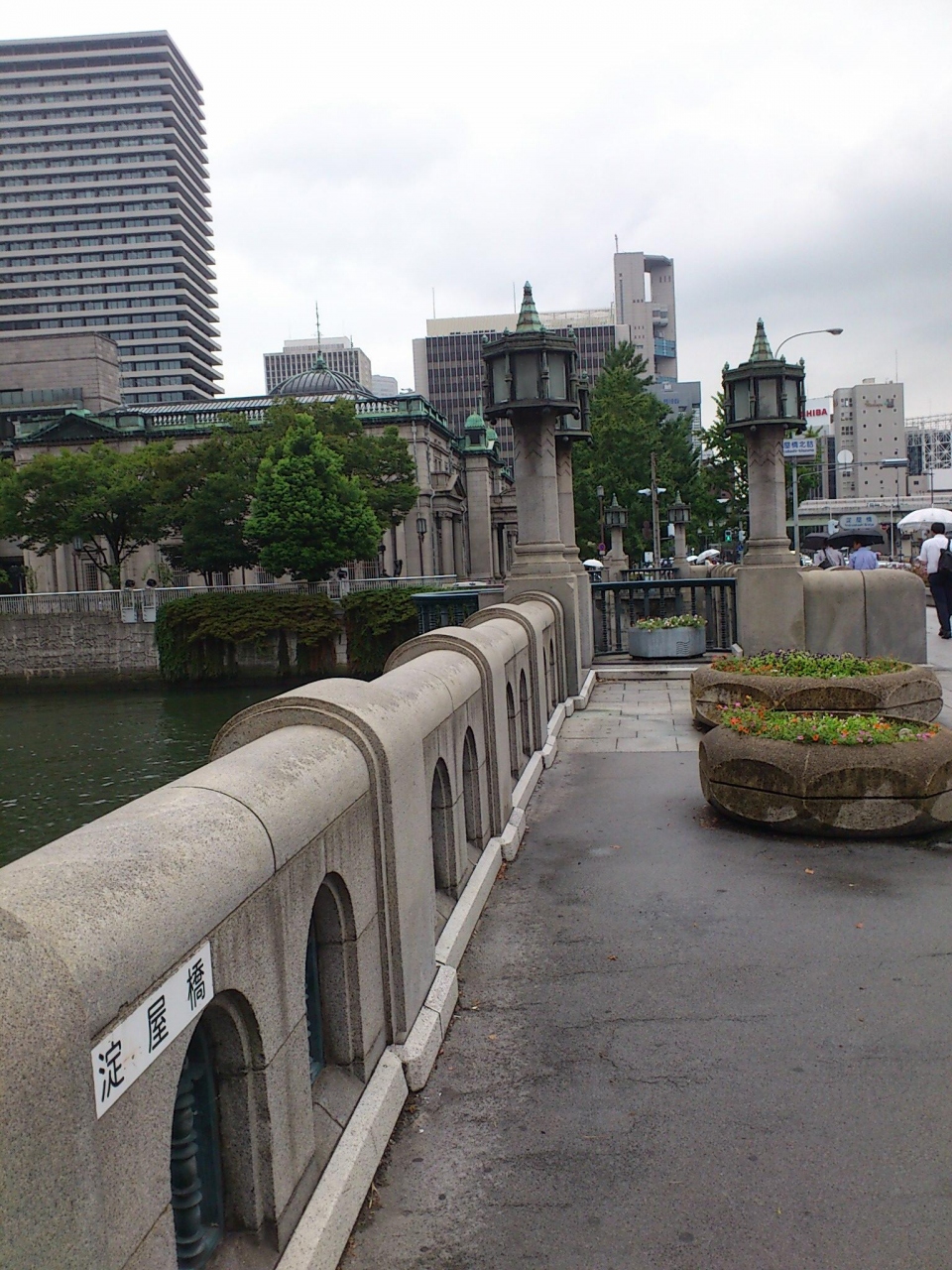 大阪の地下鉄の御堂筋線の駅名のもとになっている土佐堀川に架かっている橋です。江戸時代の豪商の淀屋が架けたのが始まりだそうです。この辺りは大阪のオフィス街で、関西の大企業の本社などが固まっている場所ですが、レトロで感じの橋です。