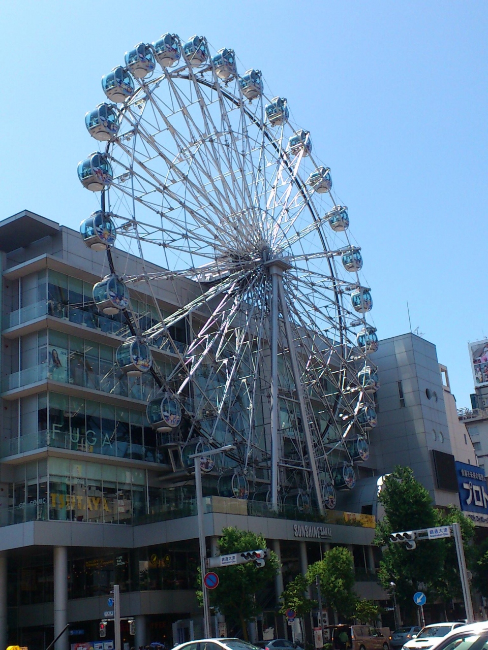 SKY-BOATというおしゃれな名前がついていますが、いわゆる観覧車です。ただし、こんなふうにビルの側面に食っ付いているのは他には無い珍しいものだと思います。とても目立つ栄のシンボル的な場所なので、よく待ち合わせ場所にも使われます。乗車賃が500円です。夜はライトアップされて、とても綺麗です。