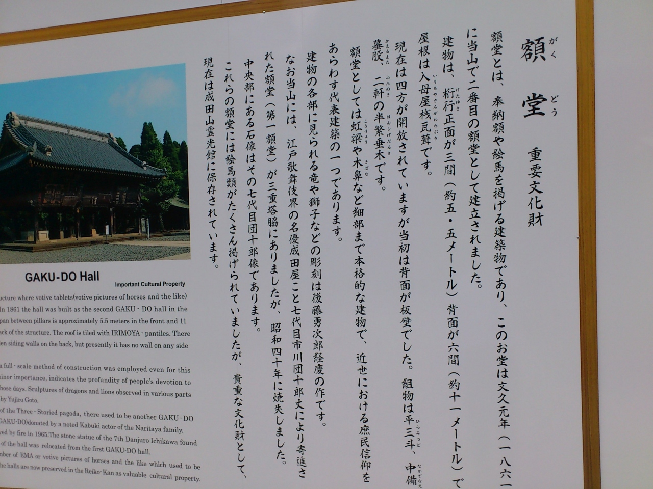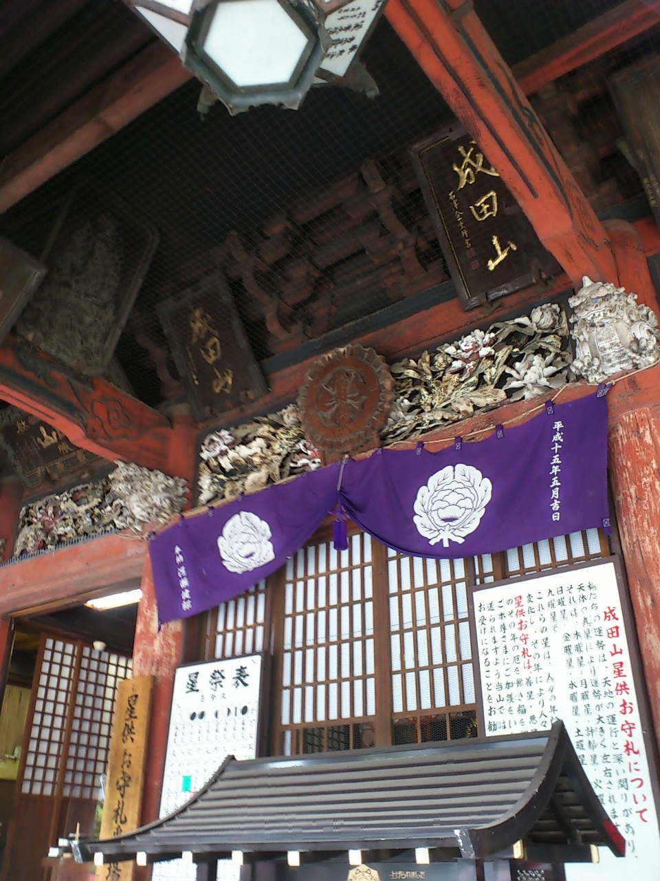 成田駅から成田山新勝寺まで、歩いて15分ほど。その間、表参道開運通りという参道が続きます。最初のころは平坦な道で、意外と若者向けのお店などもありますが、薬師堂のある三叉路を過ぎると、下り坂になって趣がガラリと変わり、いかにもお寺の参道という感じになります。うなぎ屋さんが多くあり、うなぎを焼く香ばしい良い匂いが漂っています。参詣後にうな重を食べてしまいました。