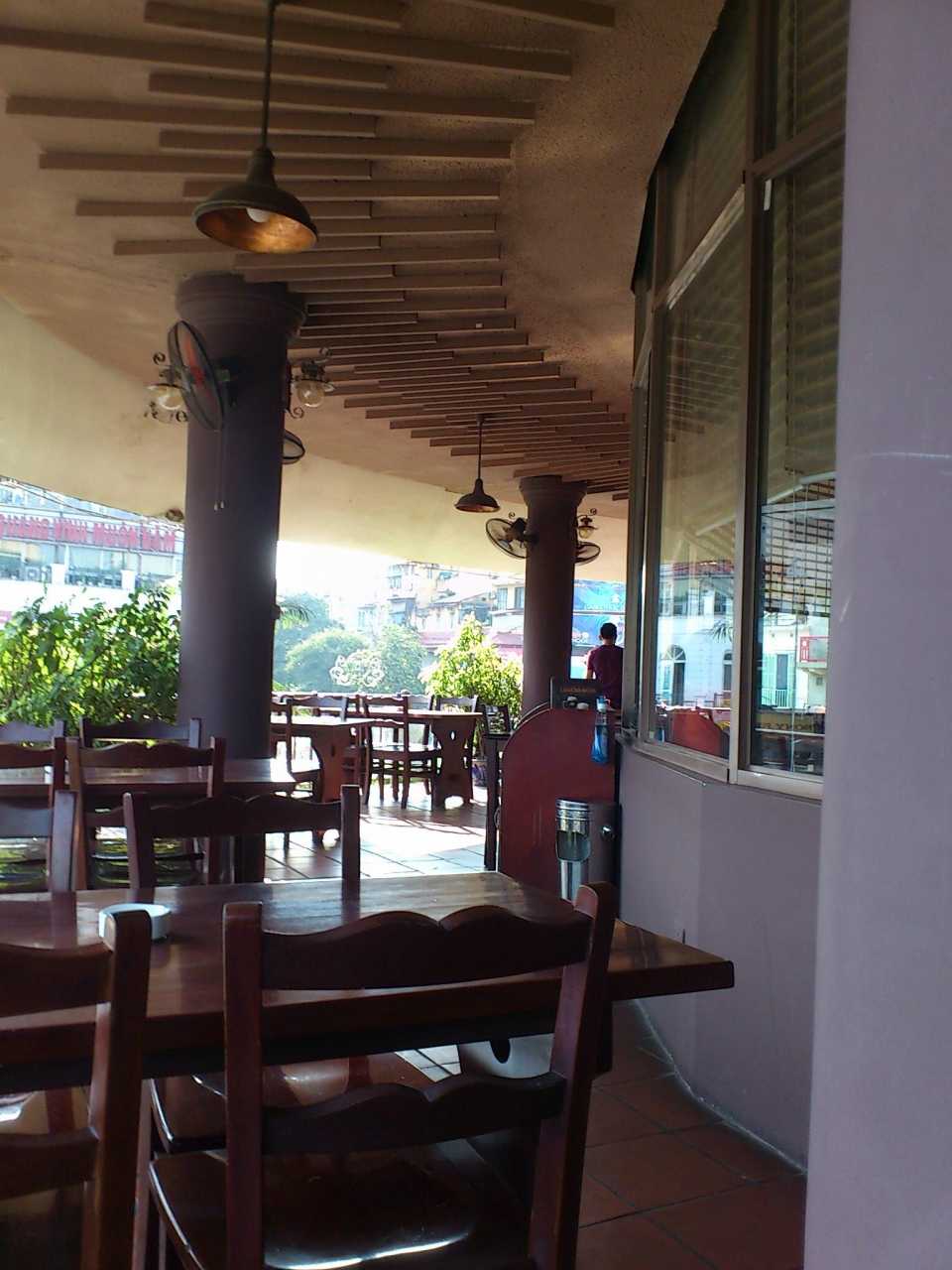 ハノイの観光名所、水上人形劇場で人形劇を見に行ったのですが、開演時間が1時間後ということで、このレストランで時間潰しをしました。同じような観光客が多く居て、ビールを飲んでいました。道路のロータリーに建つビルの3階にあります。店内だけでなく、テラス席もあるので、テラス席でベトナムコーヒーを飲みながら、下のロータリーの喧騒を見物。とにかくベトナムの交通事情はひどいもので、日本人では運転できないだろうと思います。