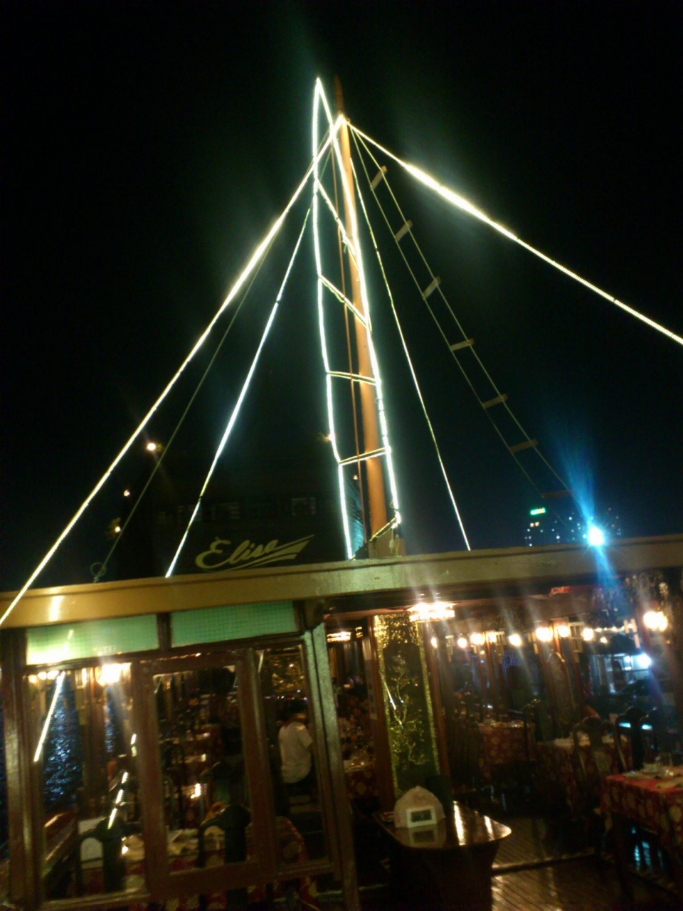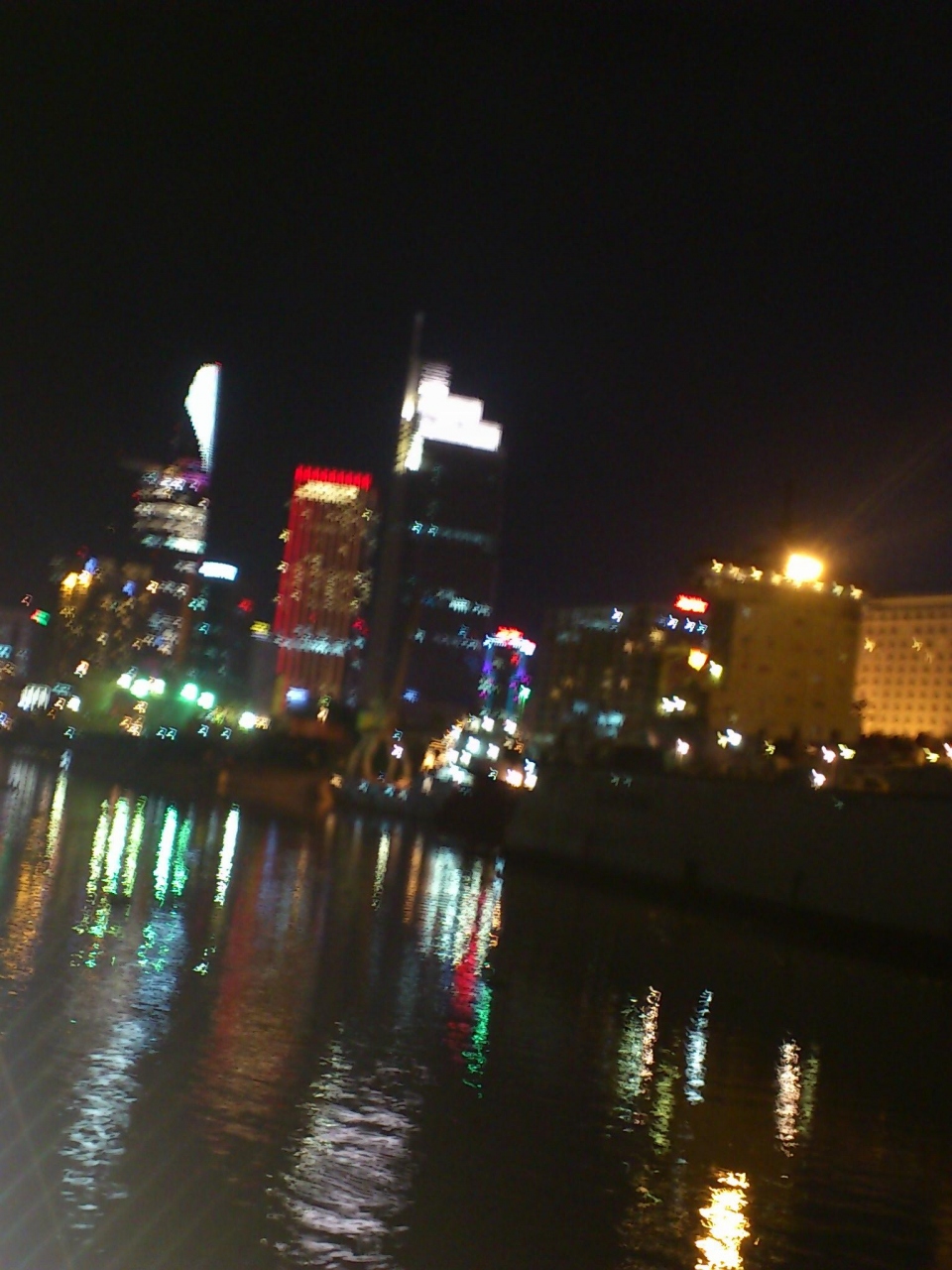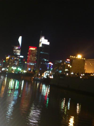 ドンコイ通りの突き当たりのマジェスティックホテルの向かいの海岸から数隻のディナークルーズ船が出るとのことで行ってみましたが、1隻もいませんでした。事前に予約なしでも乗ることが出来ると聞いていたのでびっくりです。かなり離れたところに船の明かりが見えましたが、徒歩で行ける距離ではありませんんで、仕方なくタクシーで移動です。7:30ごろ到着し、予約なしを伝えると船の3階席に案内されました。1階・2階は予約客でいっぱいでした。すぐ料理の注文を促され、出航前には料理が運ばれて来ました。8:00に出航です。2階ではベトナムの民族音楽や舞踊などのショーをやっていました。クルーズ時間は1時間半です。船から見るホーチミンの夜景は綺麗でした。