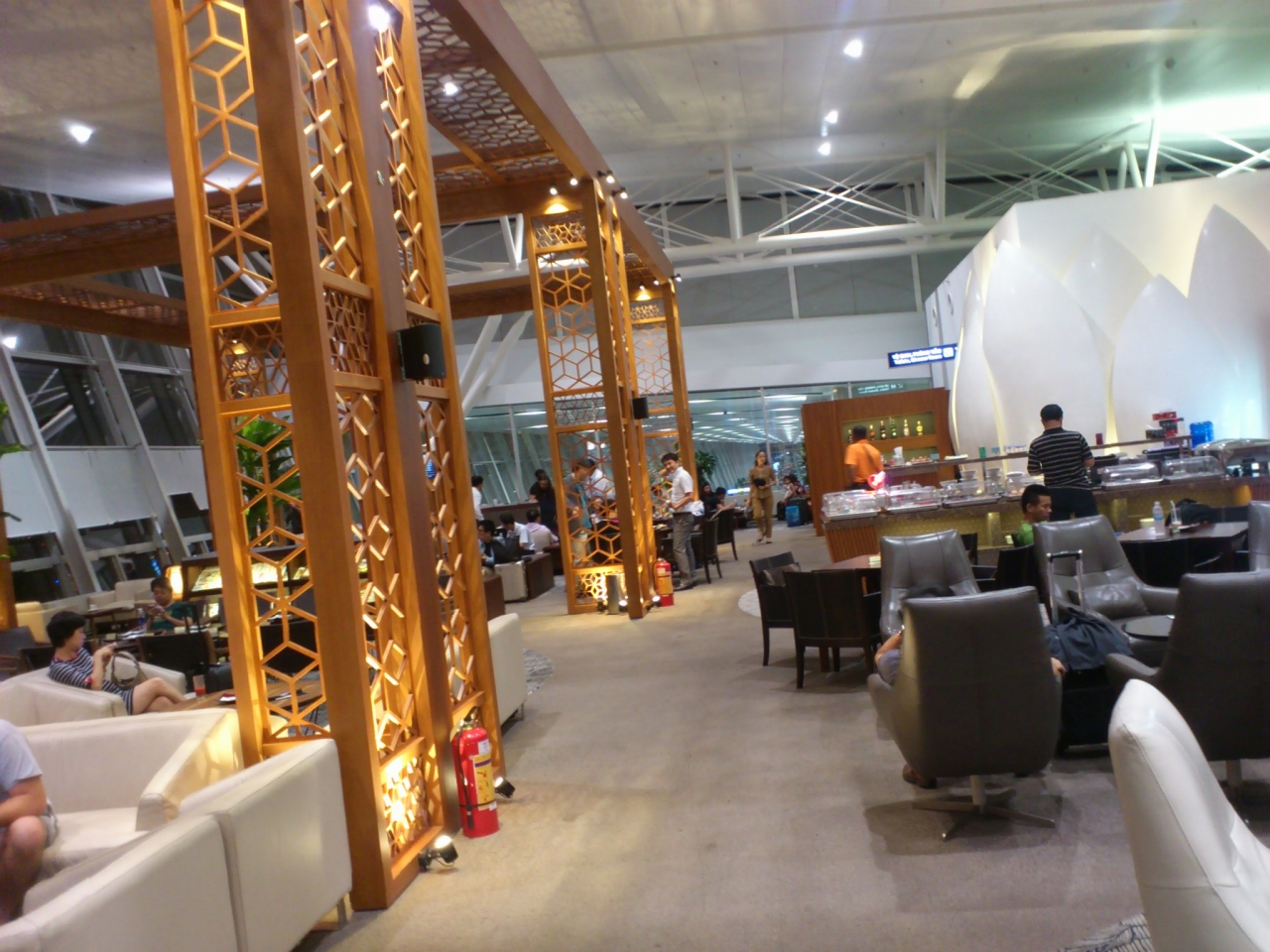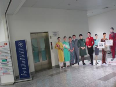 ベトナム・ハノイの国際線ターミナルにあるベトナム航空のラウンジで、同じスカイチームに属する航空会社のラウンジも兼ねています。出国審査を終えて、右側に出るとラウンジの表示があります。そこに各航空会社の女性の像があります。エスカレーターで上の階に上がるとラウンジです。出来たばかりの空港なのでラウンジも新しくて綺麗です。