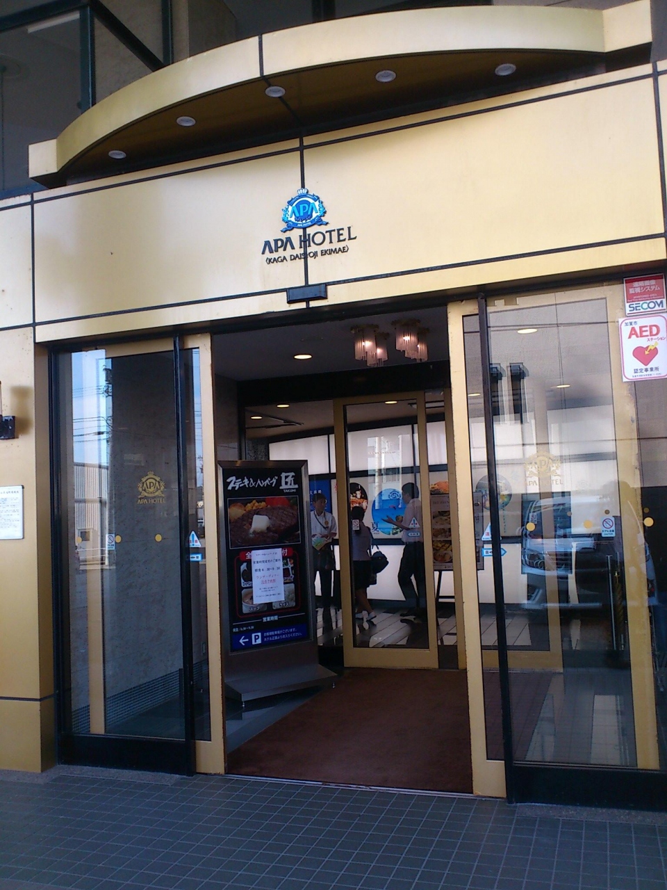 7月の三連休の初日、金沢観光後しらさぎに乗って帰る予定が台風で全休で帰れず、金沢のホテルを探したが無くて、ここ大聖寺でやっと見つけました。金沢から北陸本線の在来線で約1時間です。駅を出て右側、本当に隣にあります。駅前には何も無いので、食事は別の場所で済ませた方が良いです。ホテル自体は他のアパホテルとほぼ同じ作りです。9階に大浴場がありますが、夜間だけで朝は閉鎖しています。