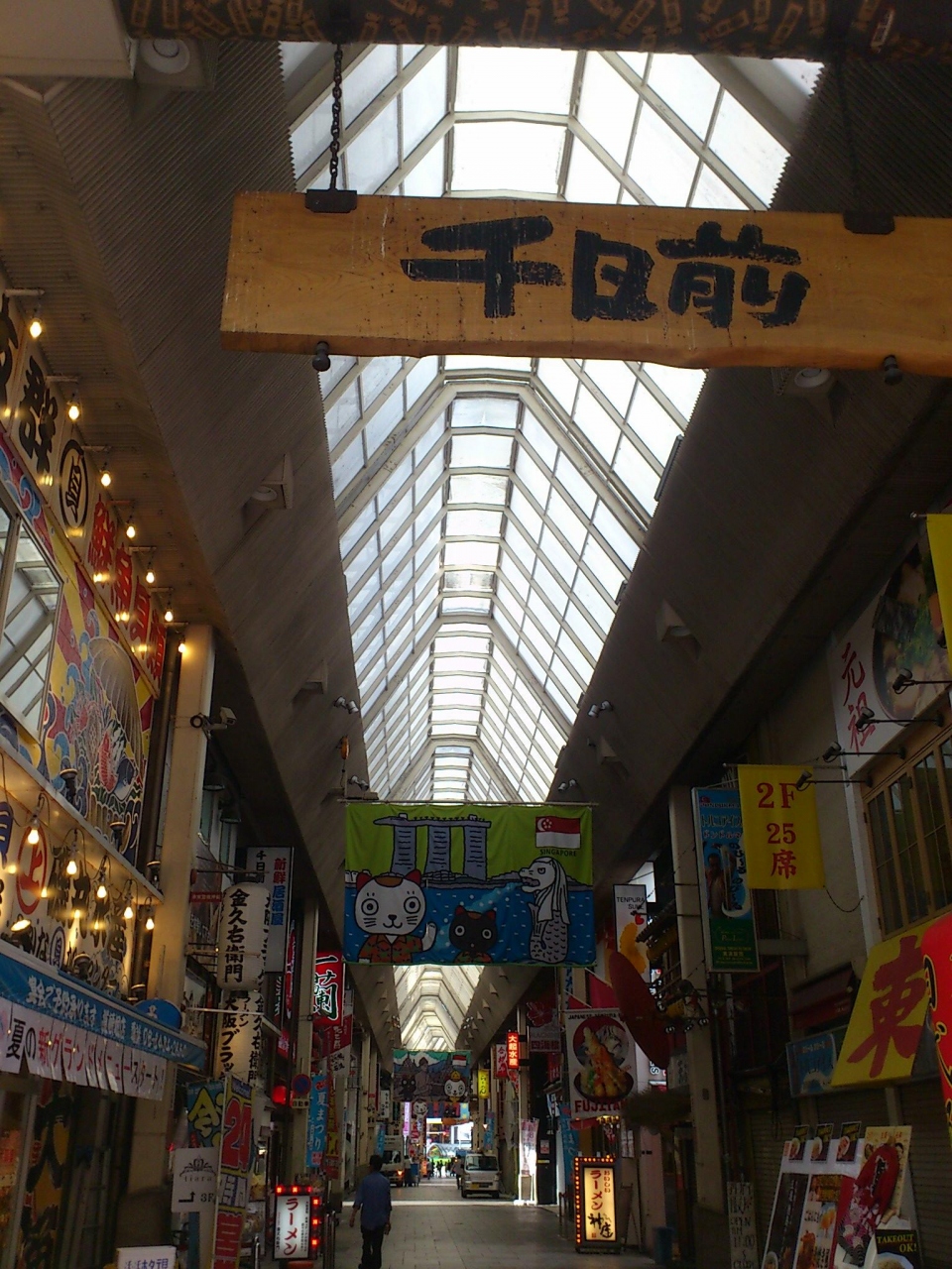 心斎橋で宿泊したホテルから南海の難波駅まで歩いて行く途中に通った商店街です。太左衛門橋で道頓堀川を渡ったあと太い道を渡ると、アーケイドの商店街がありました。土曜日の朝、そこそこ早い時間に通ったのですが、非常に雑多な感じが大阪らしさを感じてしまいました。