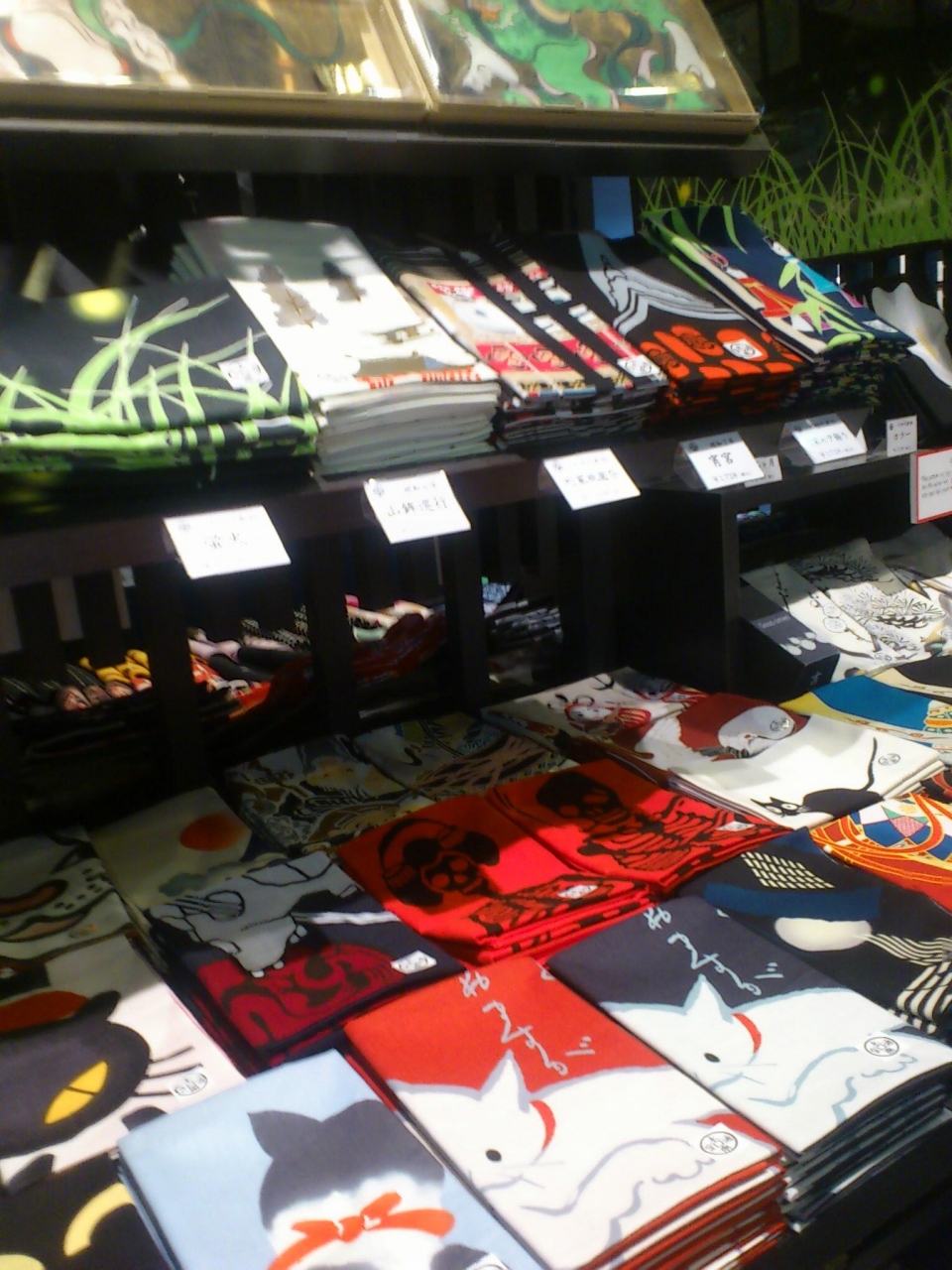 京都駅の八条口のショッピングモール、アスティロードにあるお店です。お店の前を通ると、華やかな布物が並んでいて綺麗だったので、思わず入店してみました。1600年代から14代も続く京都でも老舗のお店のようです。型友禅の手ぬぐいで、いろいろな柄があり、若い女性が好みそうな物ばかり揃っていました。