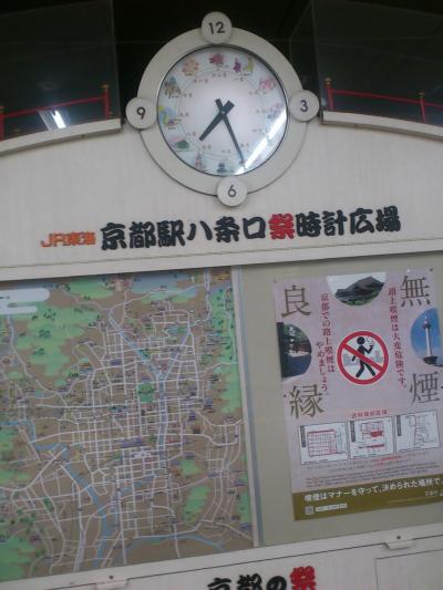 京都駅の八条口側を出てアバンティというショッピングモールを進んでいくと、この時計広場があります。ホテルの送迎バスの待ち合わせがこの場所の近くだったので、しばらくこの場所にいましたが、誰も待ち合わせしている様子がありませんでした。