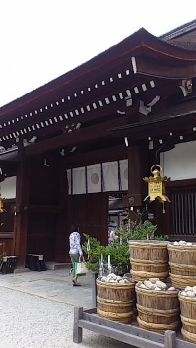 出来町柳駅から徒歩で下鴨神社へ参詣しました。糺ノ森に沿った参道を進み、とても鮮やかな朱色の楼門をくぐって境内に入ると目の前にこの舞殿があります。本殿の前の境内にどんと建っています。加茂祭の時に勅使が御祭文を奏上する場所です。これも国の重要文化財に指定されています。