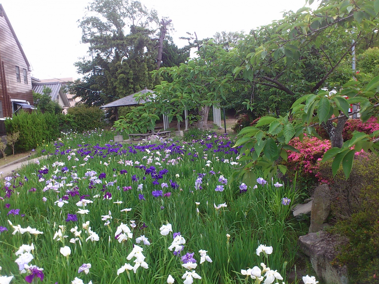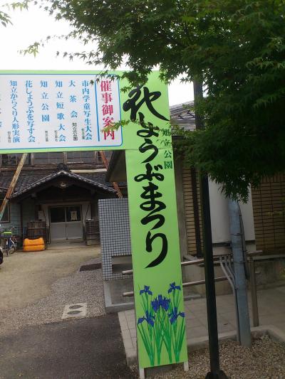 無量寿寺のかきつばた園は残念ながらかきつばたの季節が終わっていて、数本しか咲いているのをみることが出来ませんでしたが、続いて訪れたここ知立公園の花しょうぶは満開で素晴らしい眺めでした。花しょうぶ祭というイベントが行われており、すごい人出でした。散策されている方や熱心にカメラを向け写真を撮っている方など様々です。夜はライトアップされて、それも素晴らしいそうです。