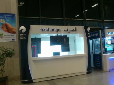 タンジェ空港で両替をしました。ベッゲージクレームの近くにありました。両替するのにパスポートを渡さなければなりません。両替明細票に名前が入ります。帰国時に日本円に戻す時に、この明細票が必要だそうです。両替にかなり時間がかかるので覚悟が必要です。