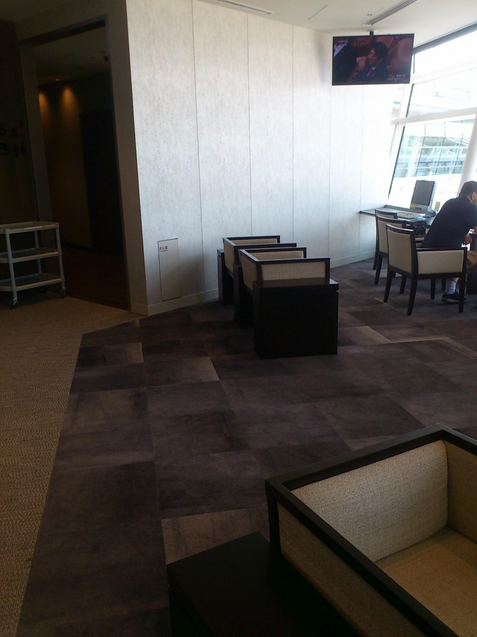 羽田国際線ターミナルの出国審査を終え制限区域に出ると目の前にエスカレーターがあります。そこを上ると、このラウンジがあります。カード会社のラウンジですが、まだ出来たばかりのようで新しいです。カードラウンジにしては広々としていますし、飲み物なども充実していました。